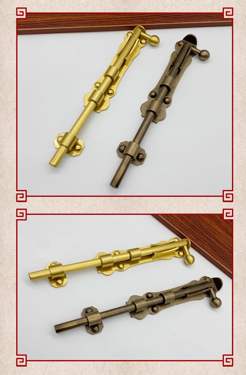 Дверная медная дверная защелка в китайском стиле, старинный садовый дверной замок, дверная защелка, дверная защелка небес и земли, напольная вставка, удлиненная деревянная дверь, дверная защелка из чистой меди
