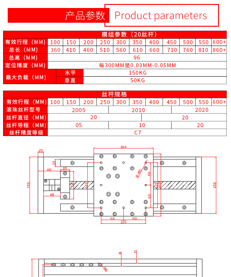 Точность и тяжелый двойной рельс -винт с прямой линией -линейная линейка для линии скейт