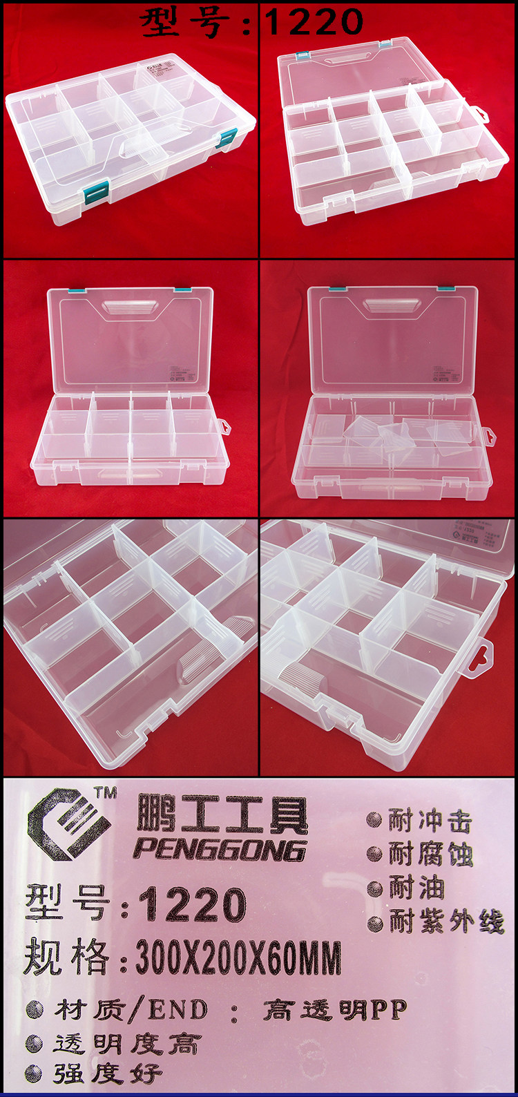 鹏工 Утолщенная прозрачная компонентная коробка для части коробки для инструмента инструмента
