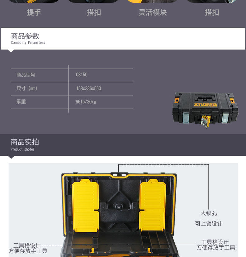 DeWei DeWalt Rock System Box ящик для водонепроницаемой пыли -напряженная тяжелая ручная пластиковая коробка лодка двойной слой DCS150
