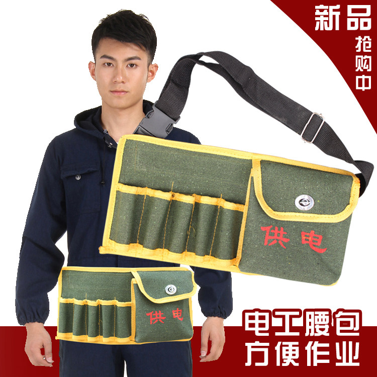 Сумка для инструментов Canvas /Много -функциональная /талия подвесная сумка /водонепроницаемая долговечность /электрическое обслуживание карманное пакет /пакет плеча Бесплатная доставка