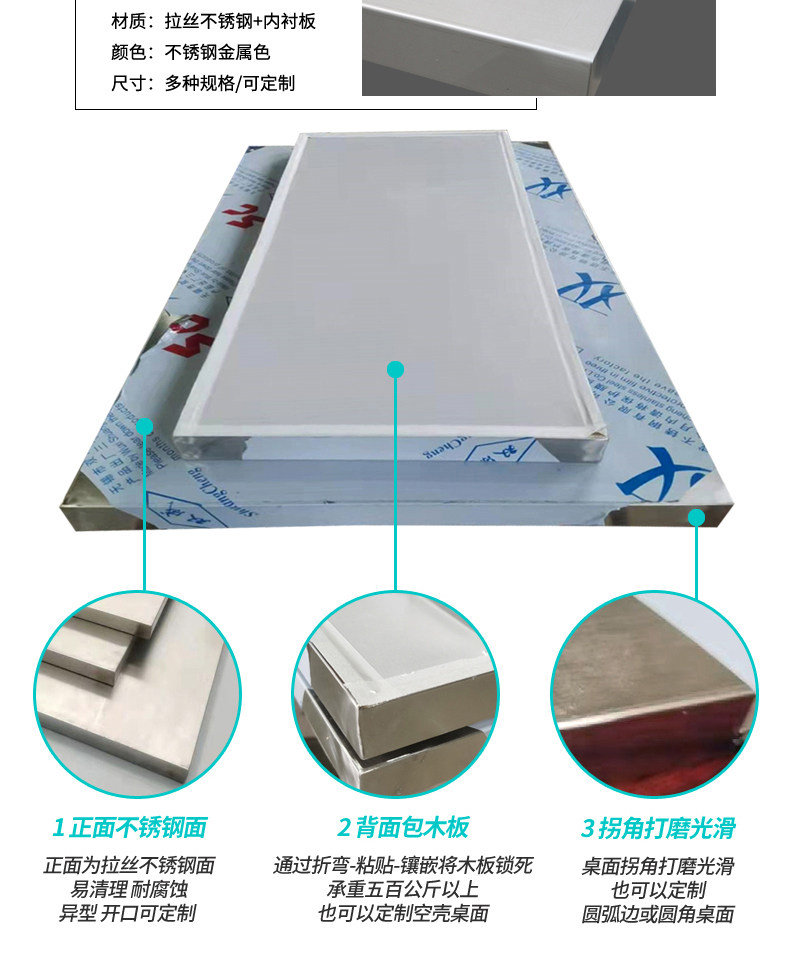 Сделанная на заказ из нержавеющей стали рабочая столовая настольная столешница из нержавеющей стали панель из нержавеющей стали деревянная доска кухонная лаборатория