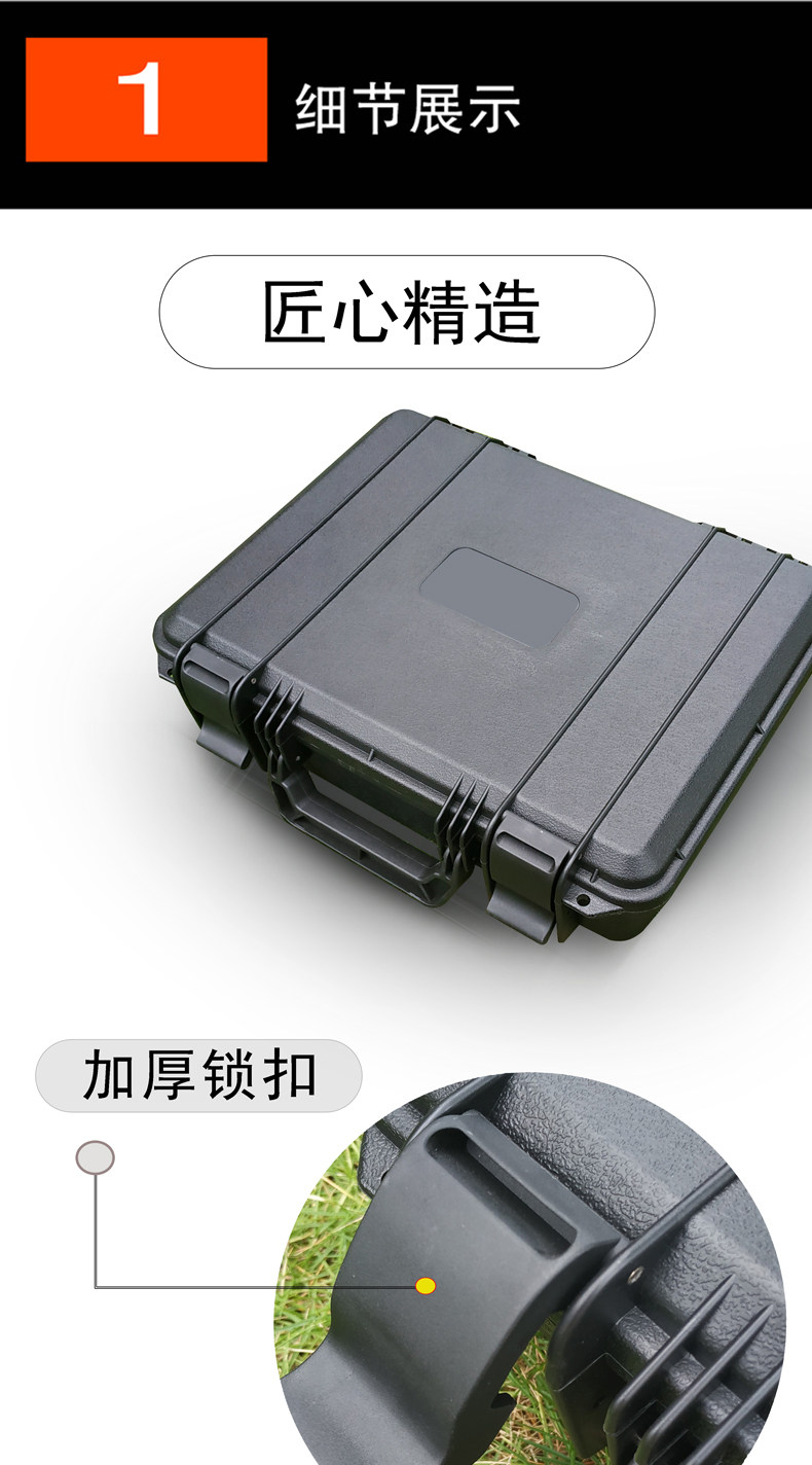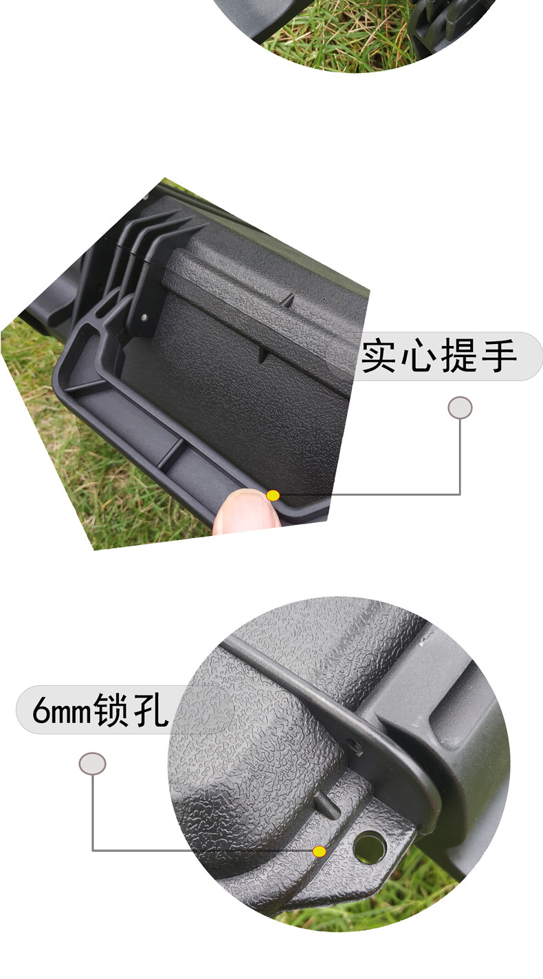 Эта пластиковая защитная коробка изготовлена из толстых материалов, имеет характеристики воздействия, устойчивости к влажности, устойчивости к пыле и легко переноски, и может эффективно защищать ваши ценности. Широко используется в электронных инструментах, инструментах, пожарном оборудовании, медицинском оборудовании, косметном оборудовании, фотооборудовании, оборудовании для обнаружения, экологически чистого испытательного оборудования для качества воды и другой ручной упаковке!