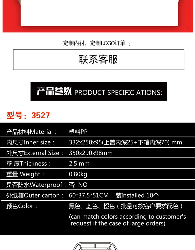 Эта серия пластиковых защитных коробок изготовлена из полипропиленового пластика и имеет черный, синий и оранжевый цвета.В больших количествах можно использовать материалы и цвета ABS в соответствии с требованиями заказчика. Для проверки и небольших партий возможна поддержка индивидуального логотипа или индивидуальной подкладки!Наша компания является производителем и может поддерживать бизнес по выставлению счетов-фактур НДС.Компания получила сертификат системы качества ISO9001, а некоторые продукты получили уровень водонепроницаемости IP67.Автономное производство и продажи,Добро пожаловать, чтобы посетить компанию в любое время!