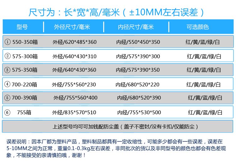 | Цвет: | 550-350 коробка [синий] за пределами 620*485*360, 575-300 коробка [синий] Внешний 640*430*310, 575-350 коробка [синий] Внешний 640*430*360, 700-220 коробка [синий] Внешний 755*560*230, 700-390 коробка [синий] Внешний 755*560*230, 755 коробка [синий] 835*570*510, 550 ящик крышка, 575 серия крышка, 700 серий обложка, 755 ящик крышка |