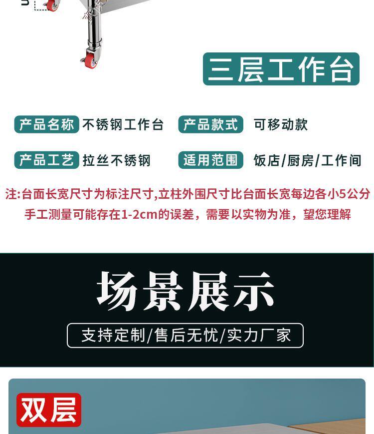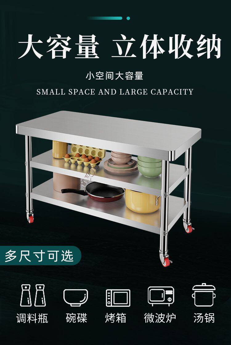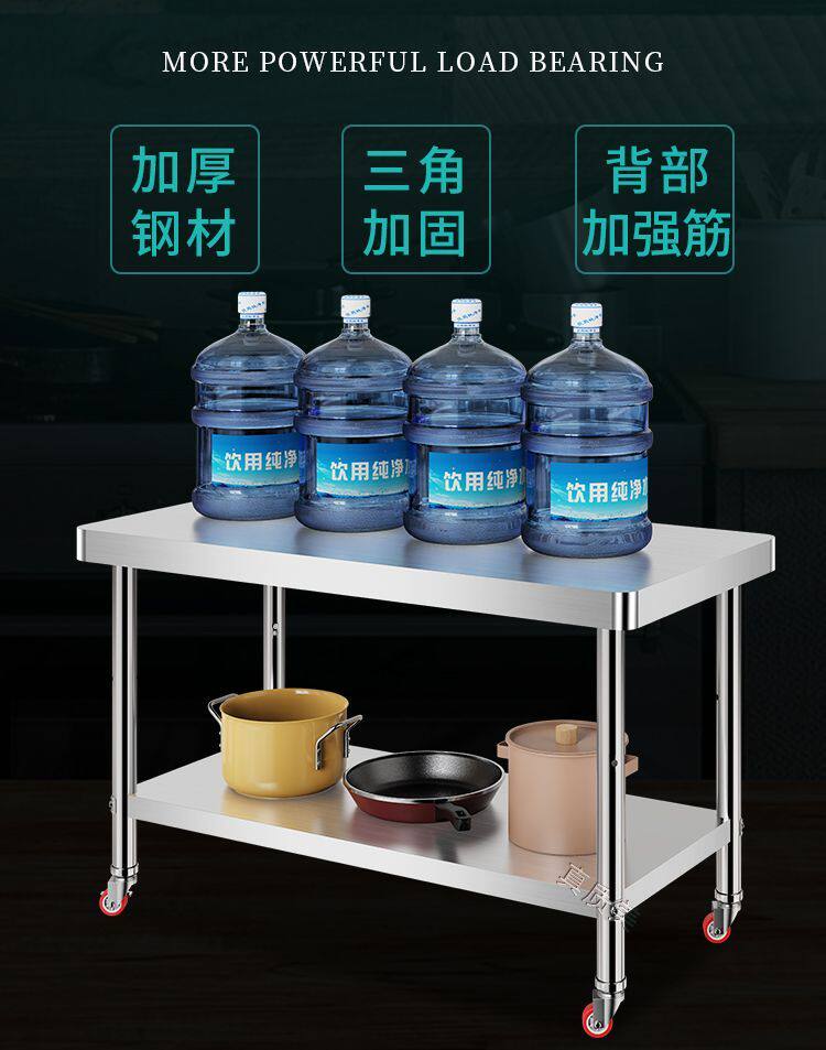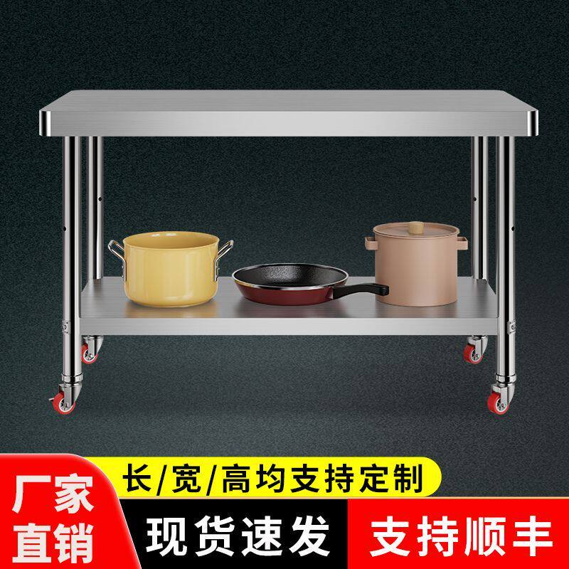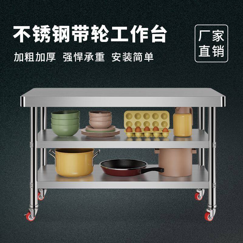 Утолщенный верстак из нержавеющей стали, мобильный, закругленные углы, кухонный верстак, кронштейн для разделочной доски, стол для резки овощей, многослойный стол для резки