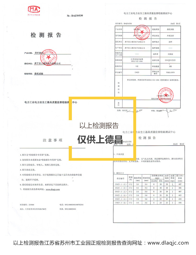 5. После одного года использования проведите комплексную проверку и проведите 1 % с использованием испытаний на растяжение. Он квалифицируется без повреждения или серьезной деформации каждого компонента (те, кто был протестирован, не должны использоваться снова)