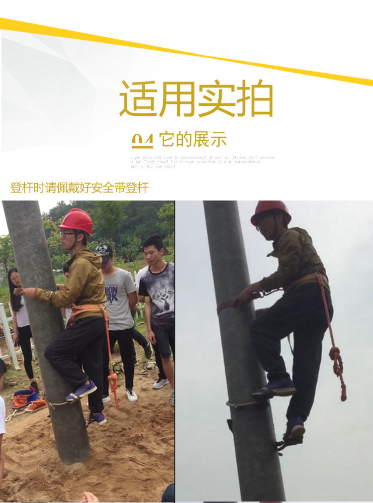 2. Использование: электрическая установка и техническое обслуживание, такие как операции высокой высоты, подходящие для внешнего электрика, операции работников телекоммуникаций, техническое обслуживание электрических проводов и другие аналогичные типы использования.Инструкции для использования: каждый раз, когда вы используете ремень безопасности, вы должны провести проверку внешнего вида. Во время процесса использования вы также должны проверить его. Вы должны проверить его один раз вдвое до одного года. Основные компоненты не повреждены, как требования ПолемЕсли обнаружено, что он поврежден и ухудшается, это отражается во времени и перестает использовать его своевременно, так что операция безопасна