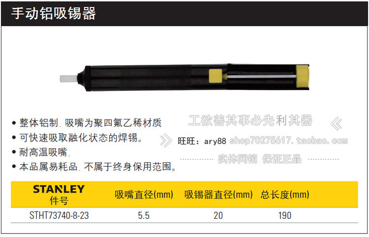 STANLEY/史丹利 Ручной алюминиевый инструмент всасывания олова stht73740-8-23