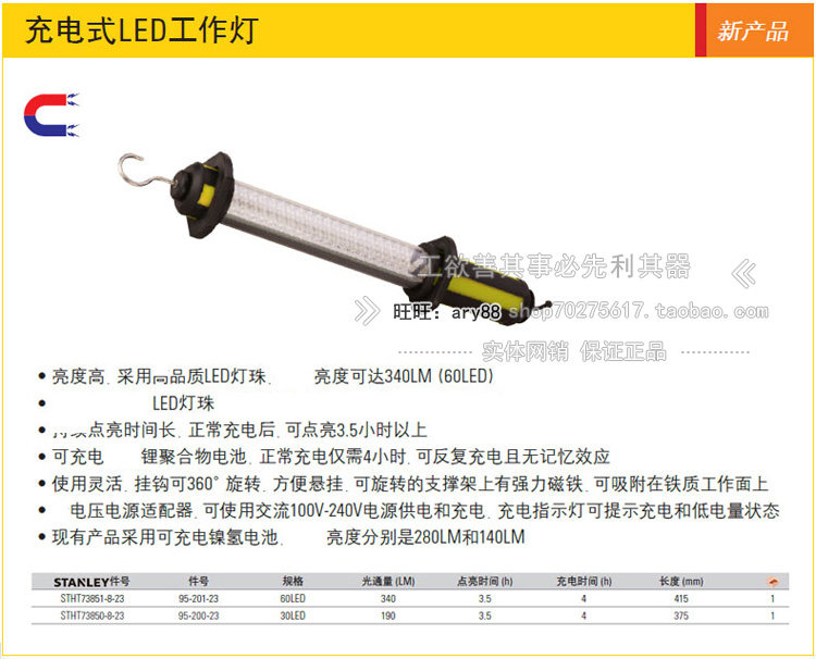 Стэнли 60-й литиевой батарея многофункциональные рабочие огни Stht73851-8-23/30LED73850 Зарядка