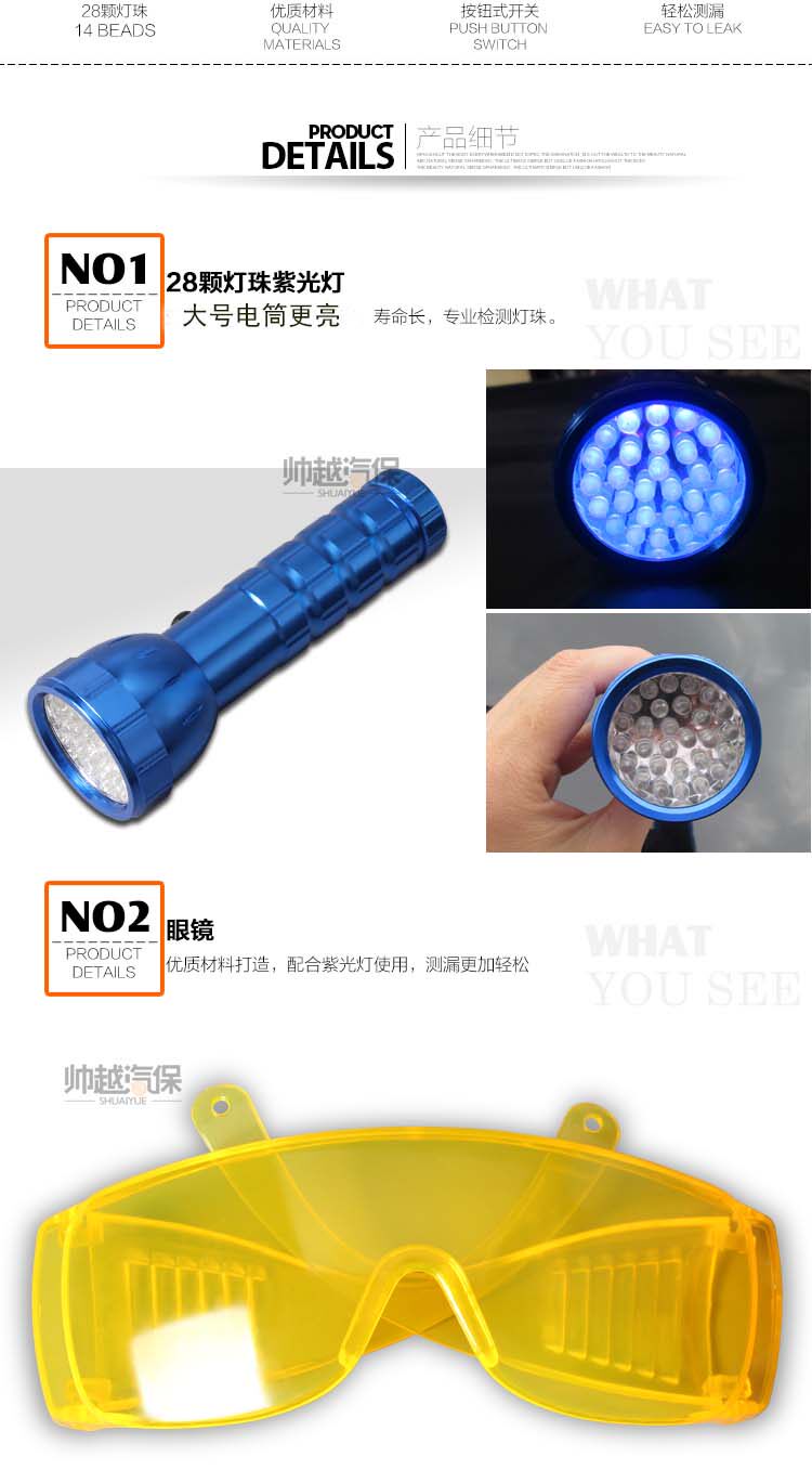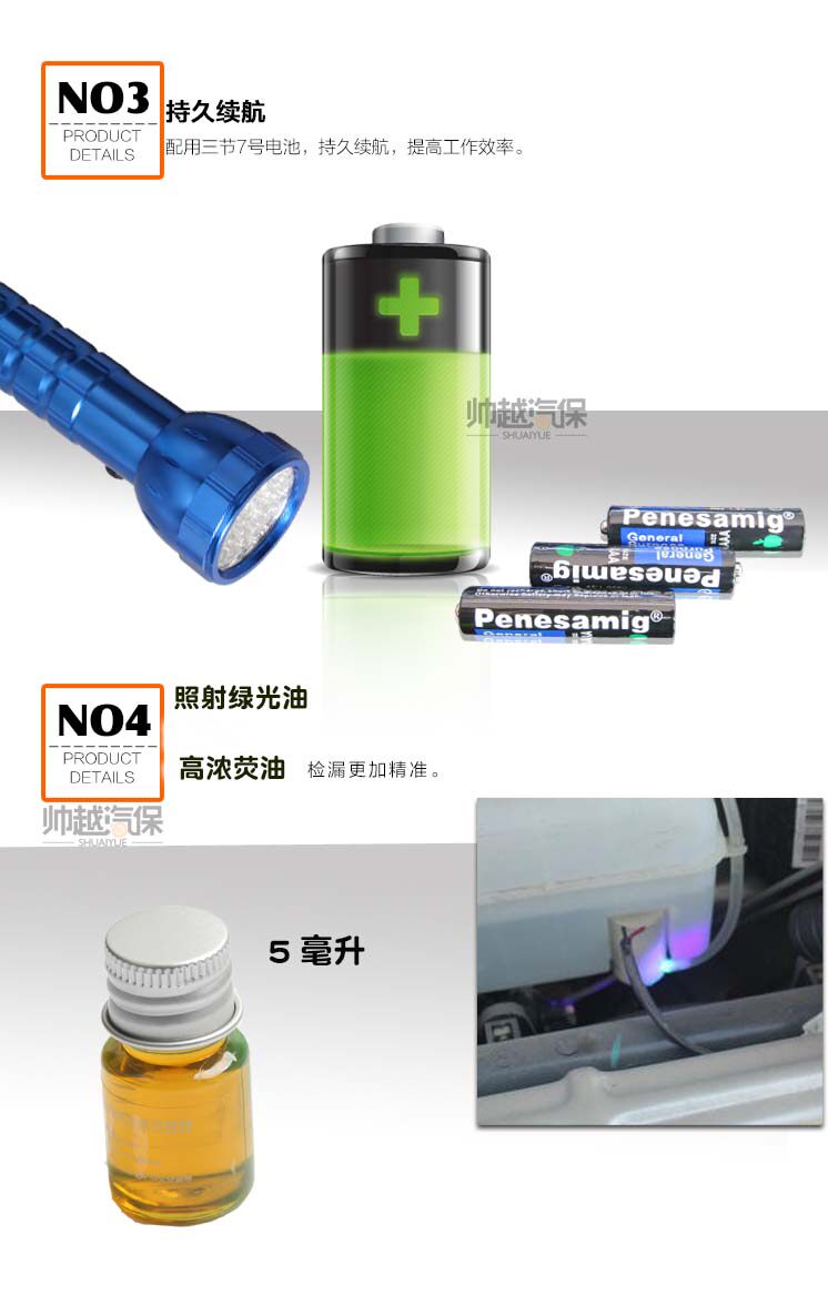 Как вводить: так же, как замороженное масло, добавьте его при низком давлении и добавьте,Включаемый переключатель кондиционера (транспортное средство с двойным ящиком должно быть включено на переключателях с передним и задним воздухом), так что флуоресцентный агент утечки может циркулировать на каждом трубопроводе хладагента.Позвольте двигателю и системе кондиционера в течение 10 минут, а затем выключите кондиционер и двигатель.Дайте балансу давления и высокое давление на трубной дороге с низким давлением, так что трубная дорога с низким давлением может получить достаточное давление, чтобы утечь хладагент