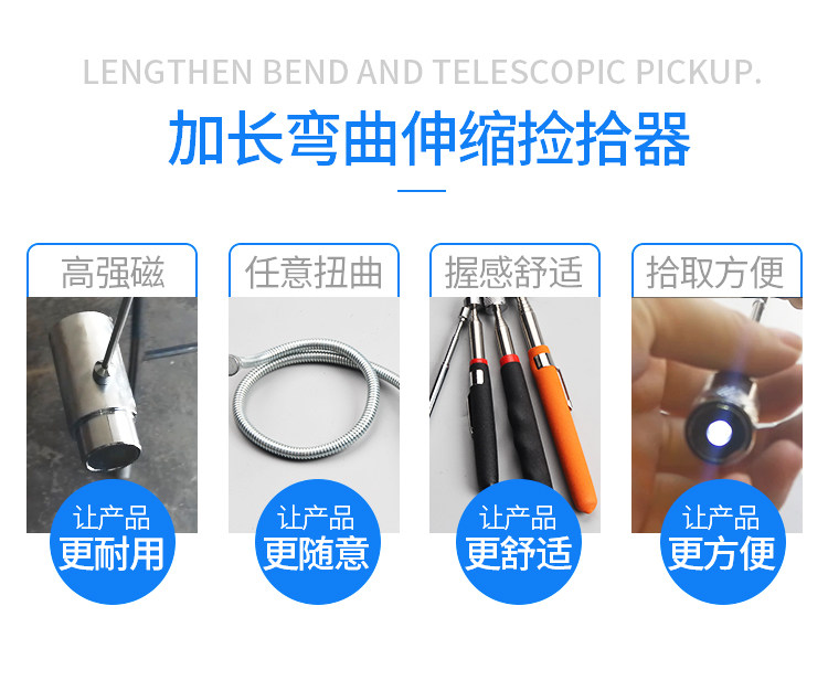 Телескопический длинный металлический магнитный набор инструментов с подсветкой