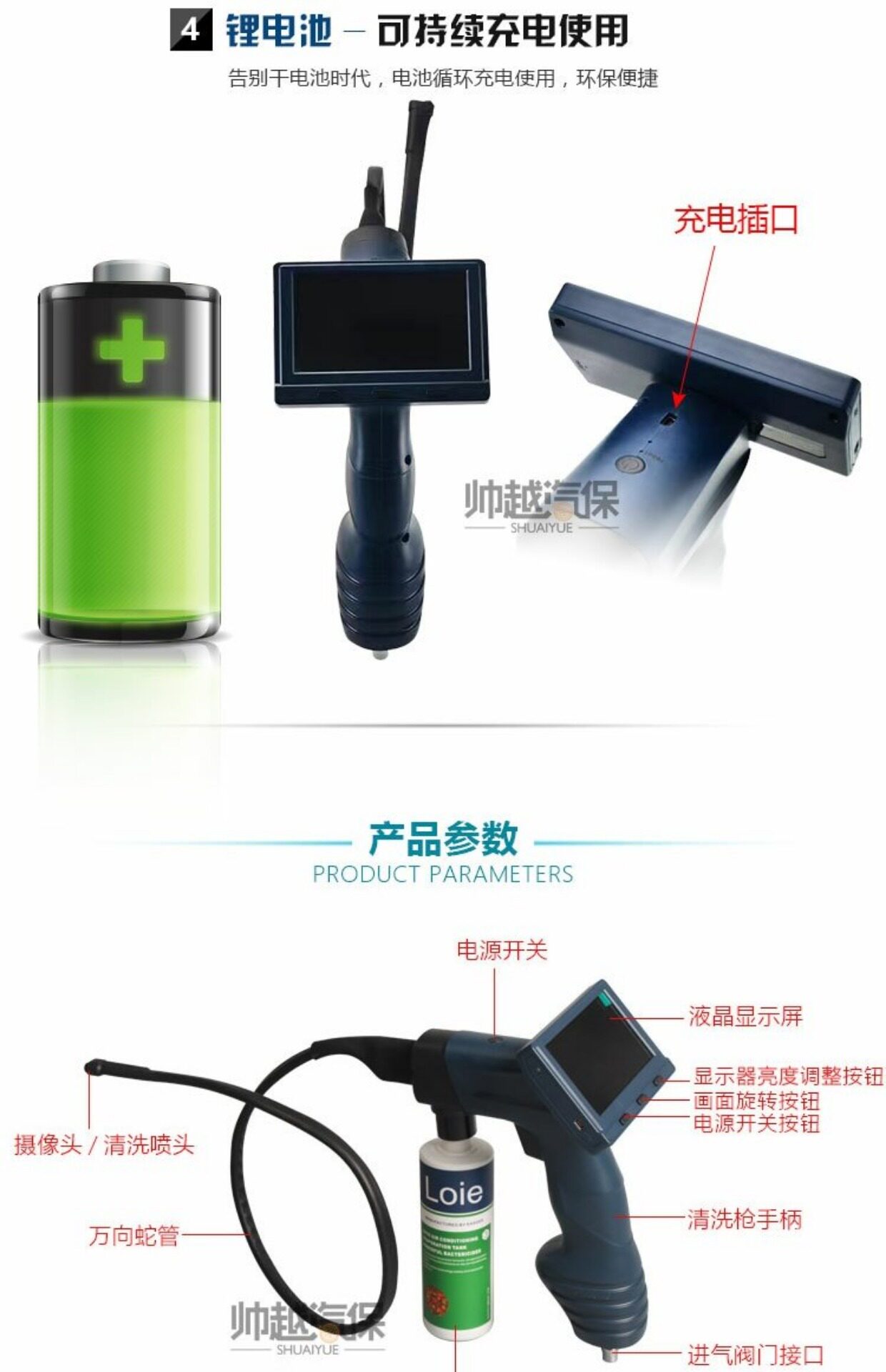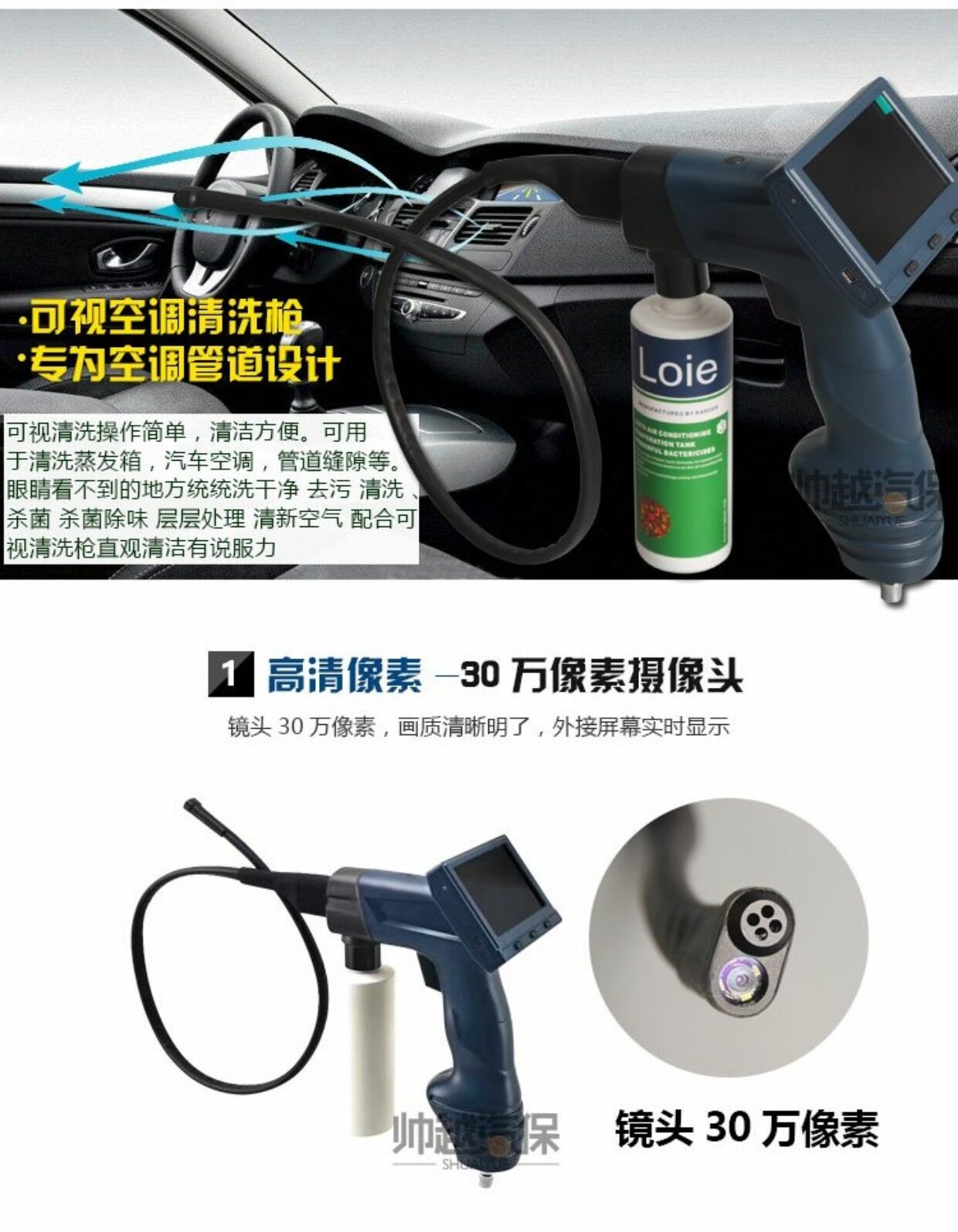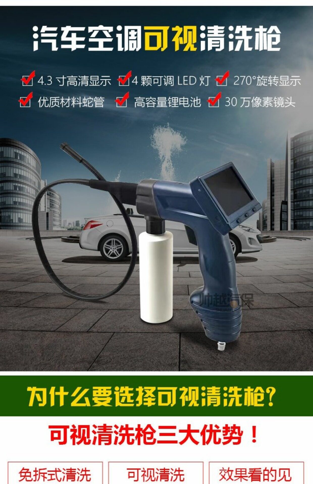 Автомобильная воздушная кондиционирование оборудование для очистки визуальной очистки испарение коробки без трубопровода Эндоскопическое опрыскивание видео
