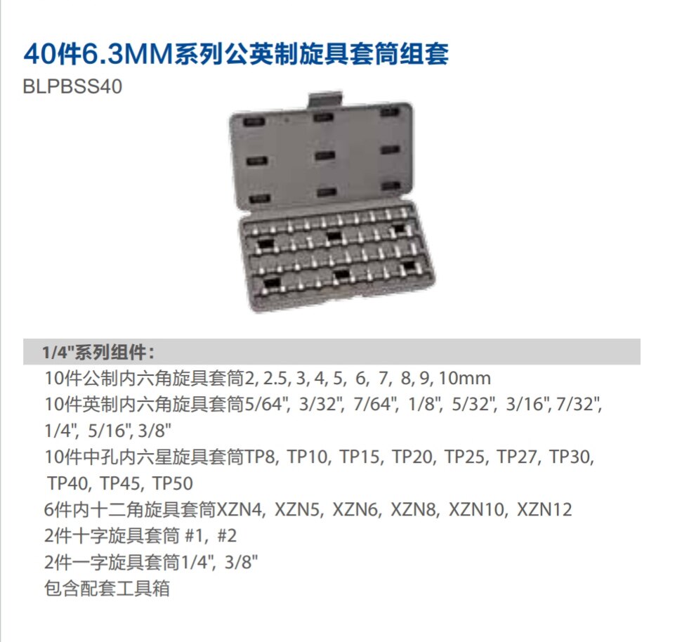 蓝点 Набор из 40 метрических и дюймовых отверток BLPBSS40 серии 6,3 мм серии Xiaofei 1/4