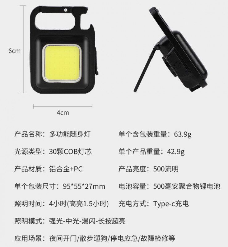 Универсальный брелок, светильник, светодиодный сильный магнит, дорожный фонарь с зарядкой