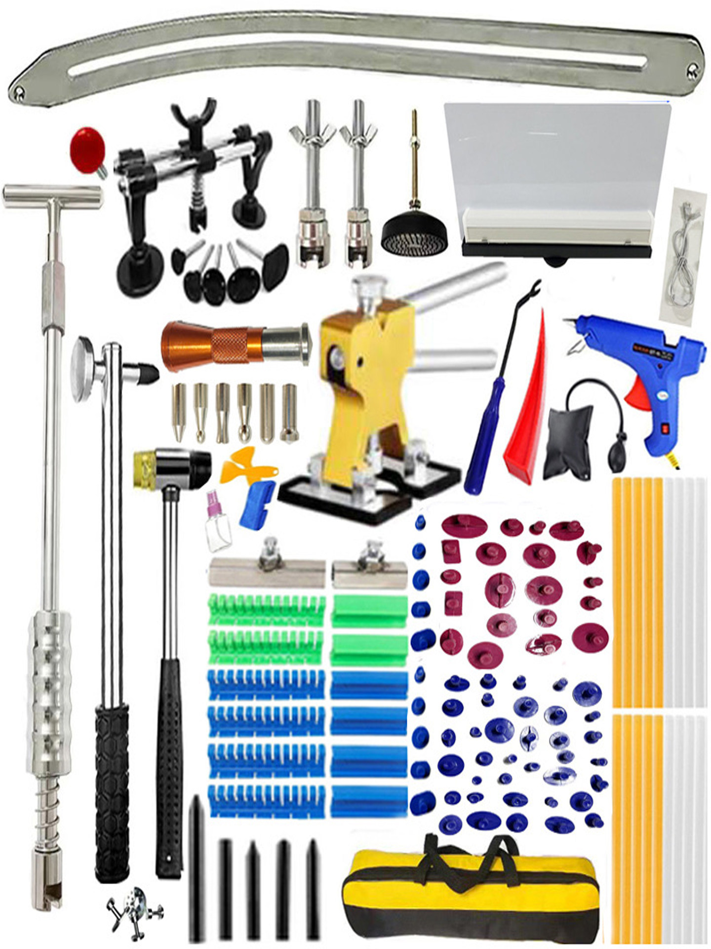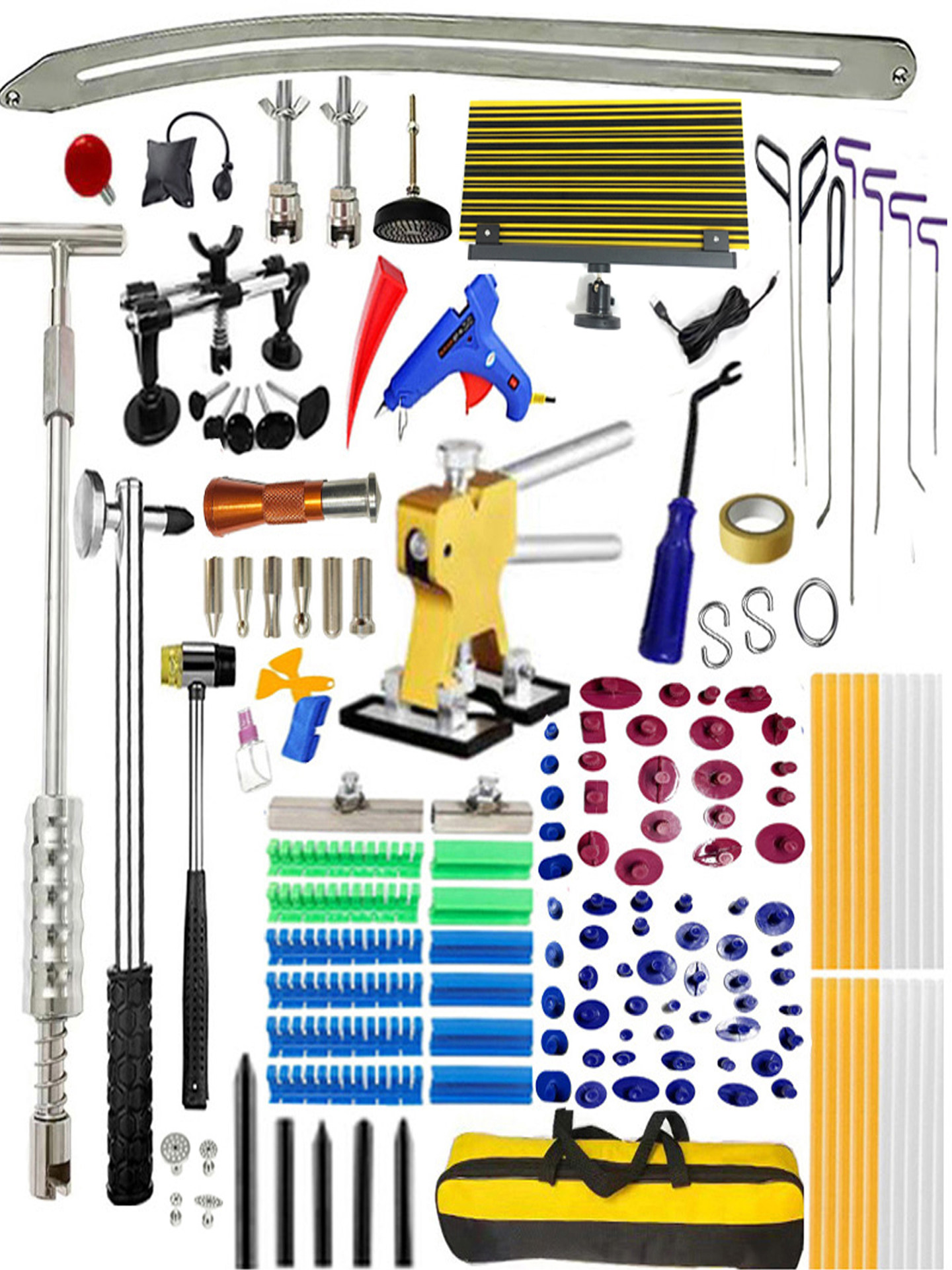 Бесследный автомобильный ремонт вмятин из листового металла, мастерская по ремонту артефактов, вмятина, градовая яма, набор инструментов для ремонта кузова