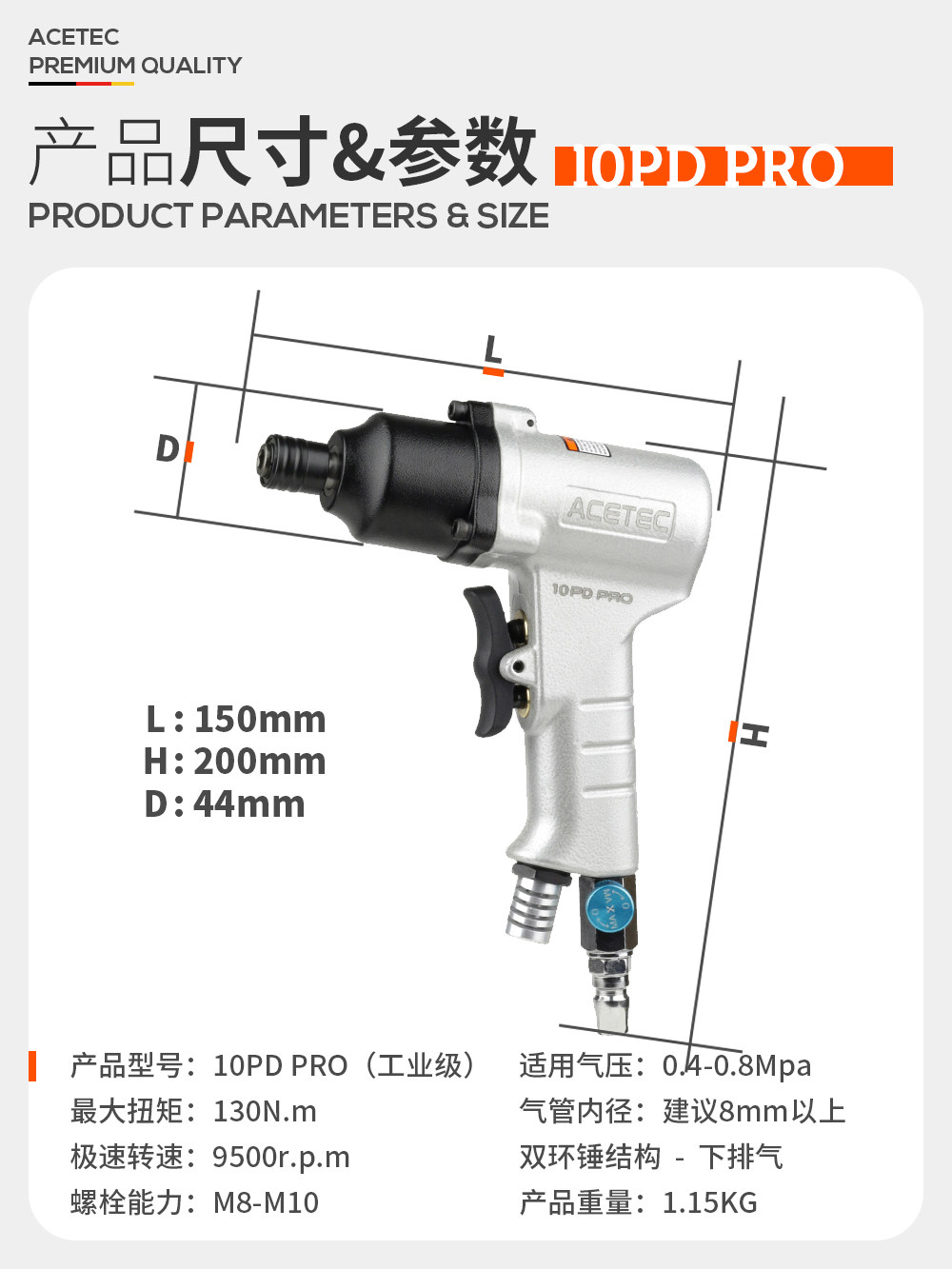 Acetec Astaik 10pd Industrial -Degrade Pistol Air -Batch Pneumatic Outcriver