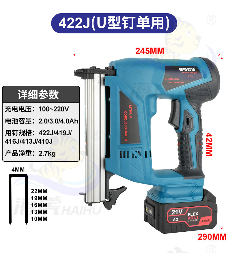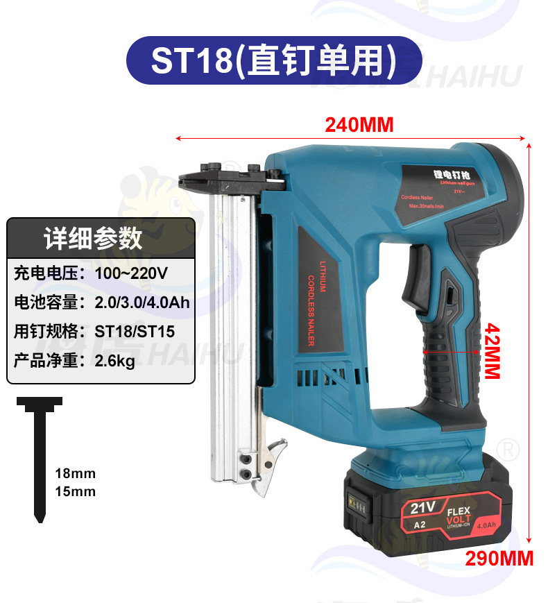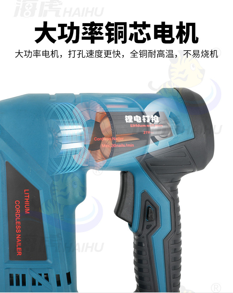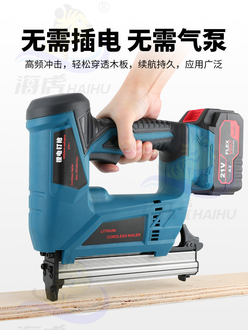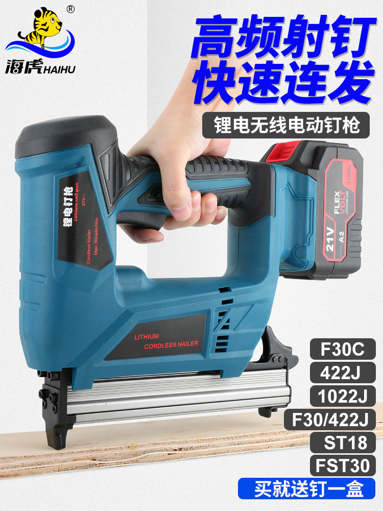 Haihu Lithium Lithium Nail Gun Electric Nail Gnal Gunging Gunna Gun Door Disting Code Carpentry Straight Nailing Pun