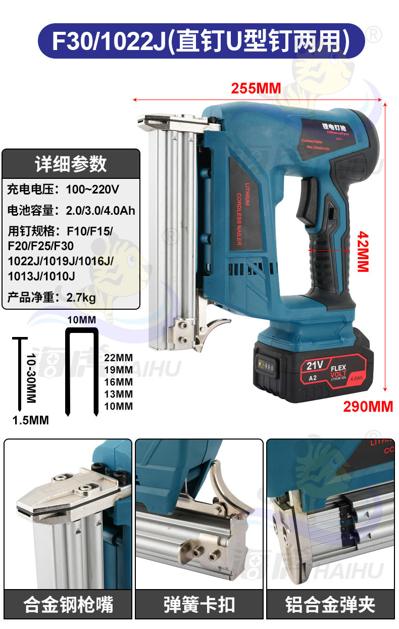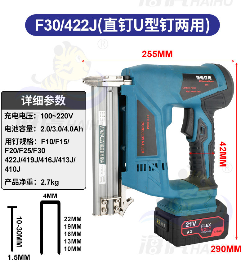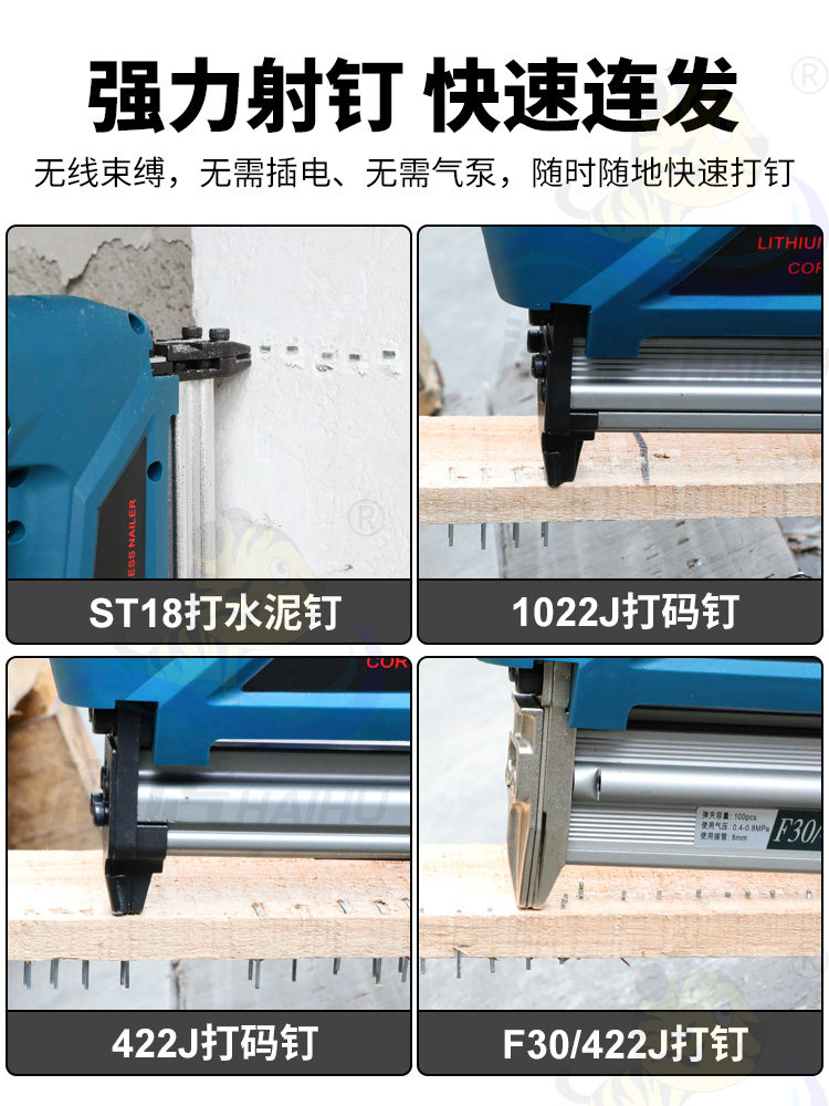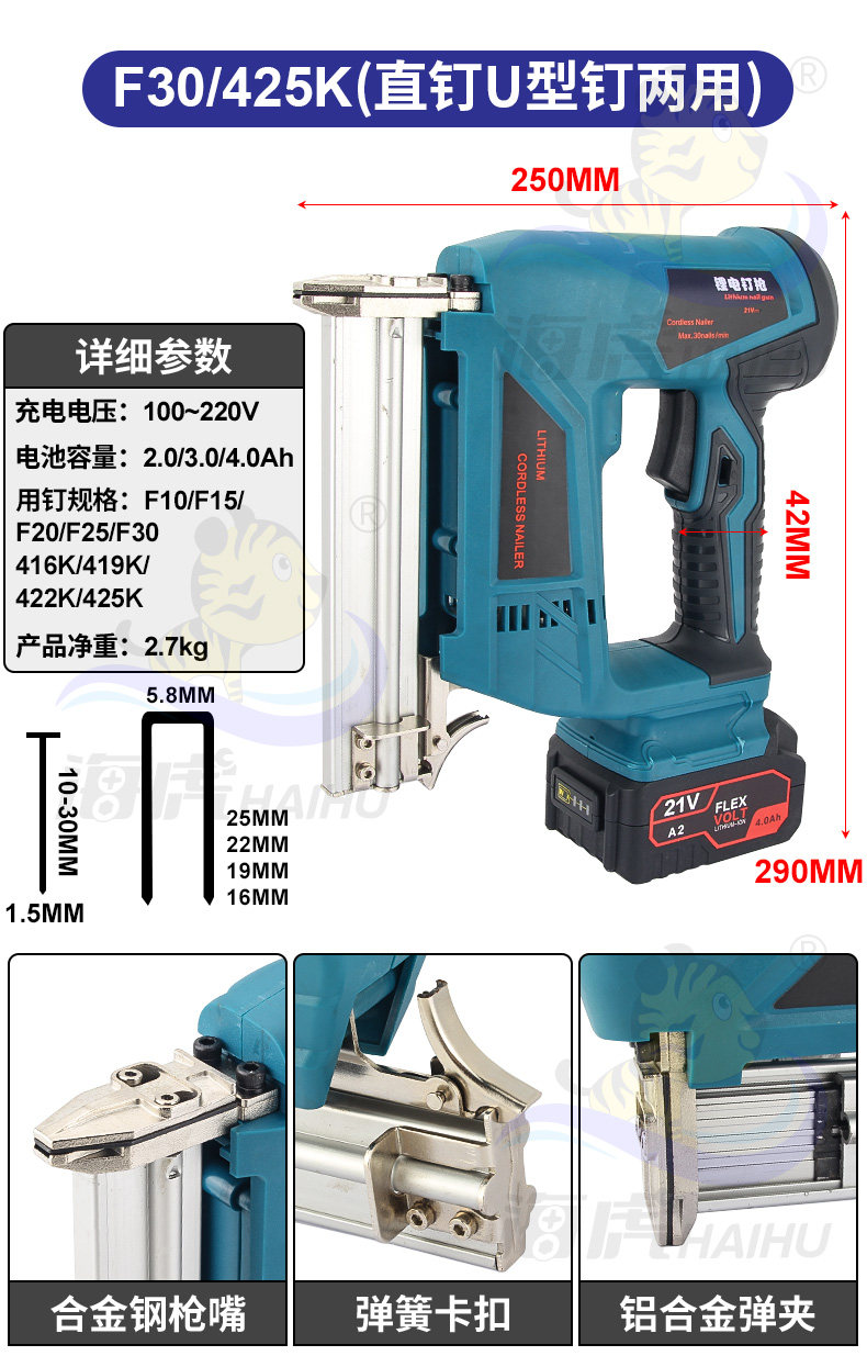 Haihu Lithium Lithium Nail Gun Electric Nail Gnal Gunging Gunna Gun Door Disting Code Carpentry Straight Nailing Pun