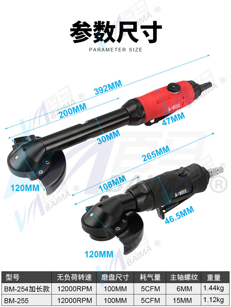 - Красная 4-дюймовая расширенная угловая шлифовальная машина BM-254