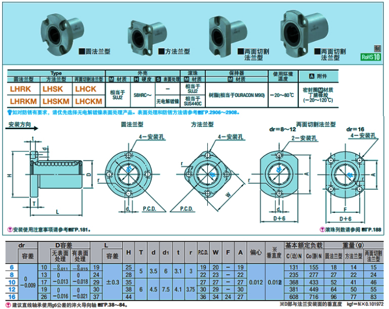 Принесение фланца прямой подшипники LHRK LHRKM LHSK LHSKM LHCKM 6 8 10 12 16