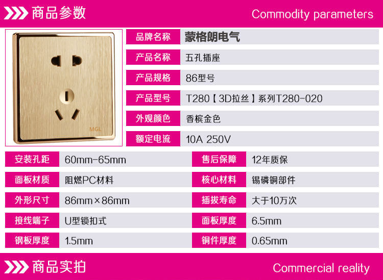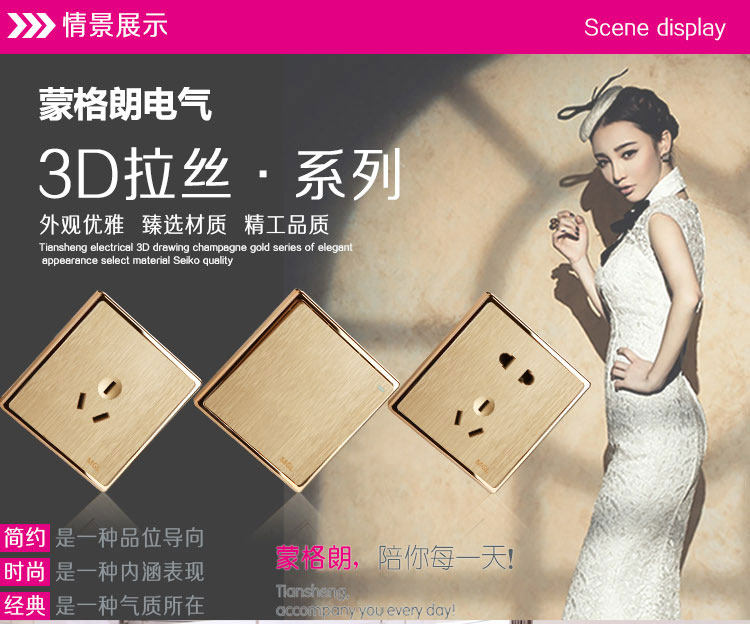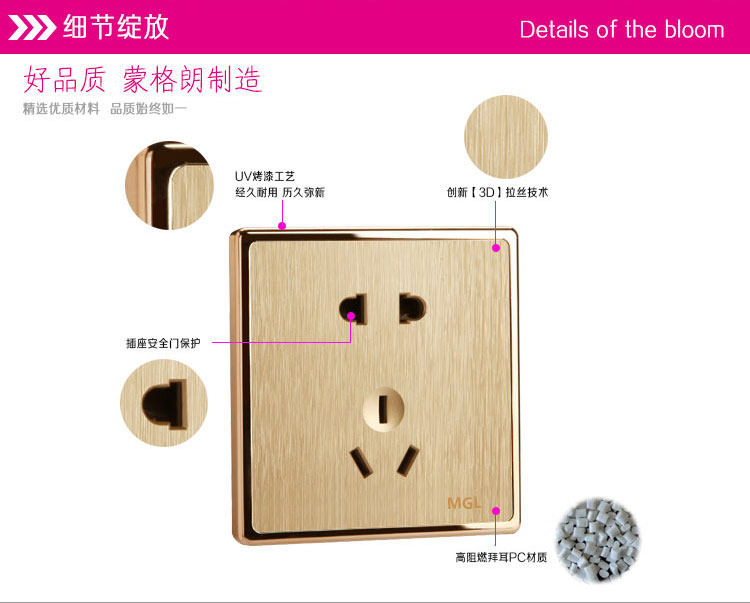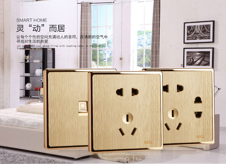 Бесплатная доставка Monteram Electric Wall Socket, компьютерный розетка, сетевая кабельная панель с шампанским золото шампанского