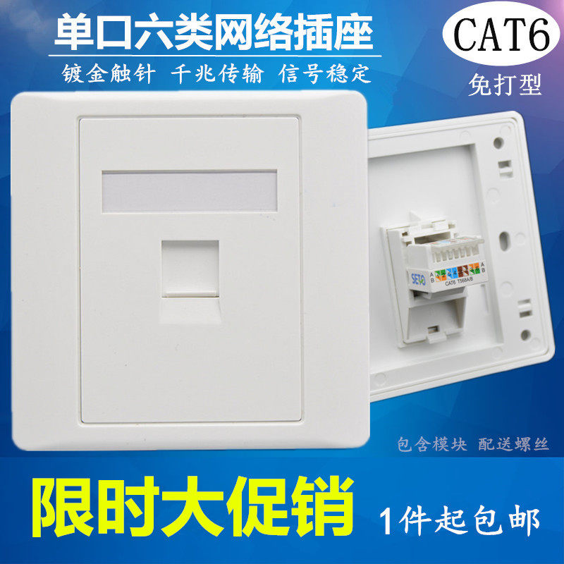 Одно -EXIT -Mouth Six -Type Network Socket 86 RJ45 Gigabit Network Cable Computer Module A Cat6 сетевой порт панель