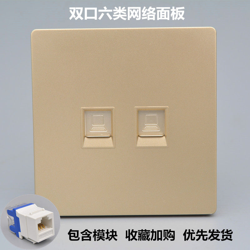 Цвет шампанского двойной -порт шесть -тип сетевой розетка 86 Двух -дигит гигабитный компьютерный модуль 2 сетевой кабельный кабельный кабельный панель Cat6