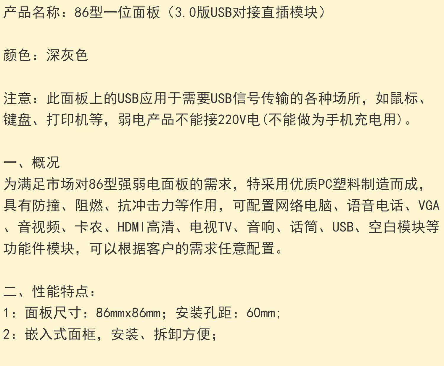 Dark Grey 3.0USB Computer Wall Panel 86 USB Data Exted Line Socket USB -док