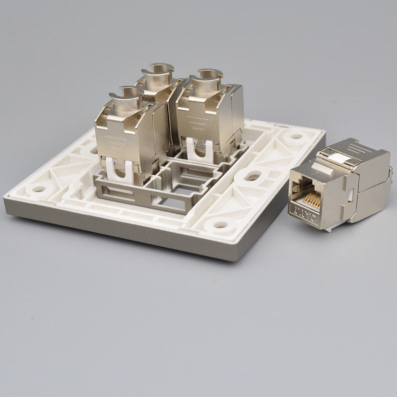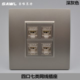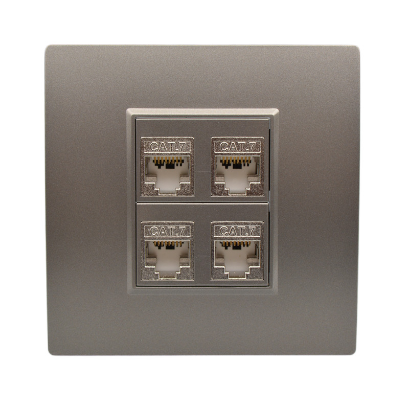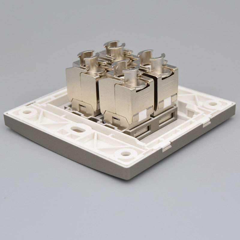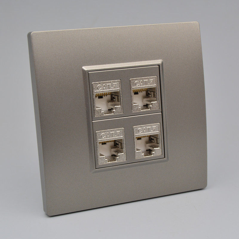 Темно -сероватый четырех -порт Семь экранированные сетевые кабельные кабельные рота роты Cat7 Computer 10D Module 4 -бит сетевой настенной плат