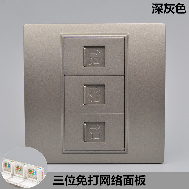 Dark -Gray Sankou Network Panel 86 Dark Super Five -Type Free Line -Без сетевого кабеля Three Computer Plug
