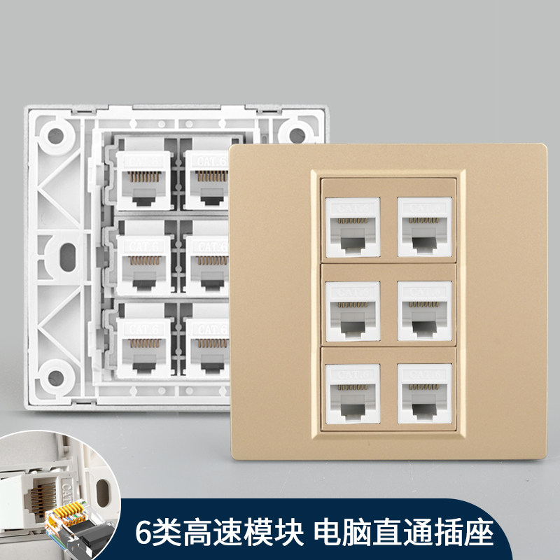 Dark Down Down Computer Computer Sockets 6 -отверстие сетевой линии кристаллической головки непосредственно подключена в пористые гигамоновые супер шесть типов экранирующей сети