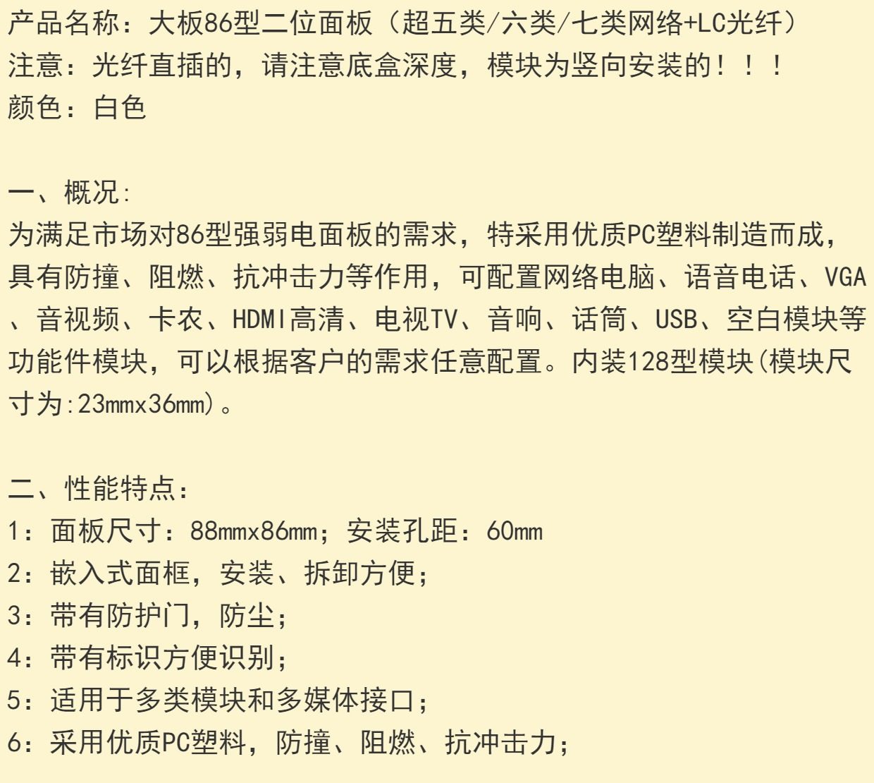 Звездная серая сеть. Фворибная панель 86 Тип шесть гигабитов Семь -дивизии Семь -размер подключения LC Оптическая вход Скорость стены