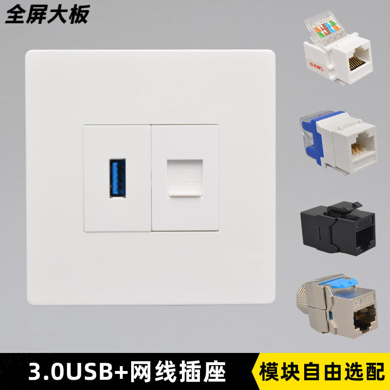 Большая тарелка 86 Cat7 Network 3.0USB Прямая линия линии расширения данных Шесть типов панели компьютера сетевого кабеля RJ45
