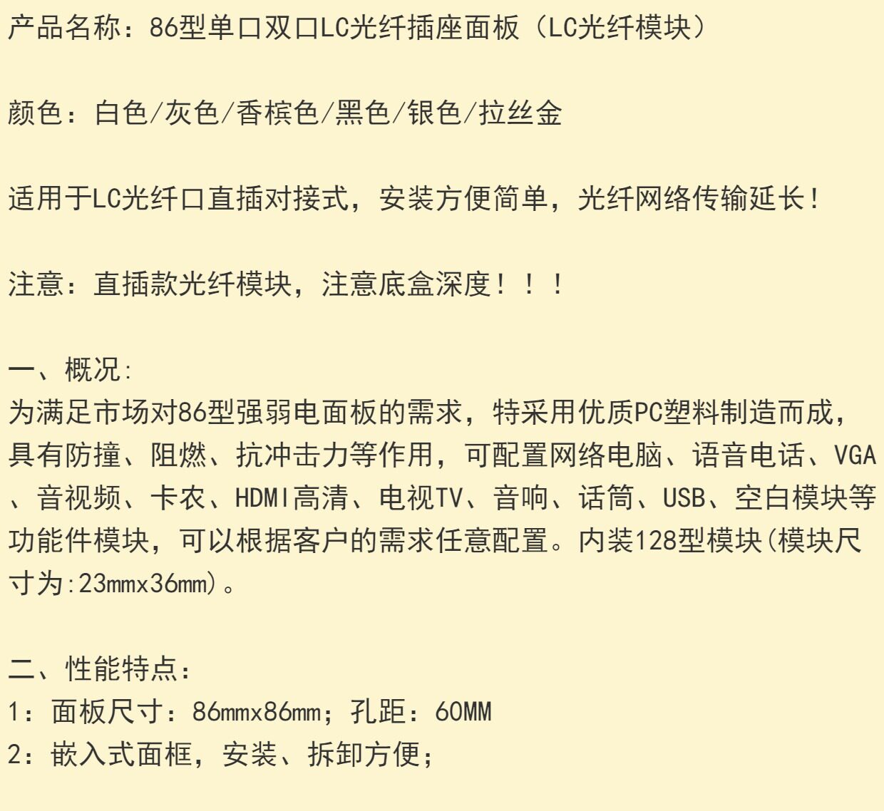 Тип 86 Wall Gigabit Computer Network Одиночная двойная оптоволоконная панель One или две оптические пленки LC Optical Fiber Black Grey