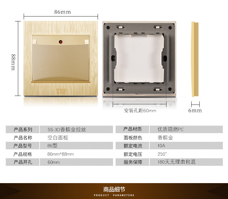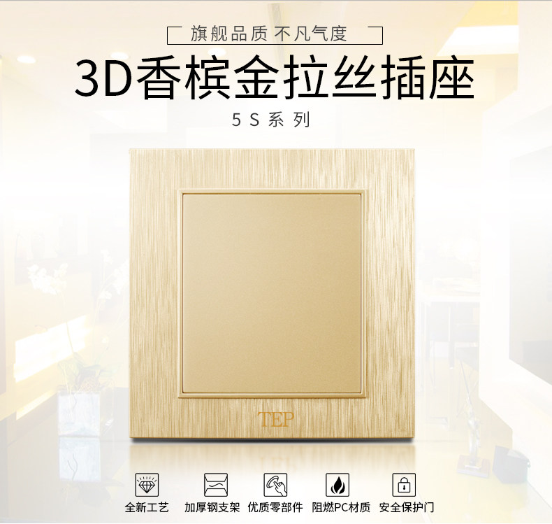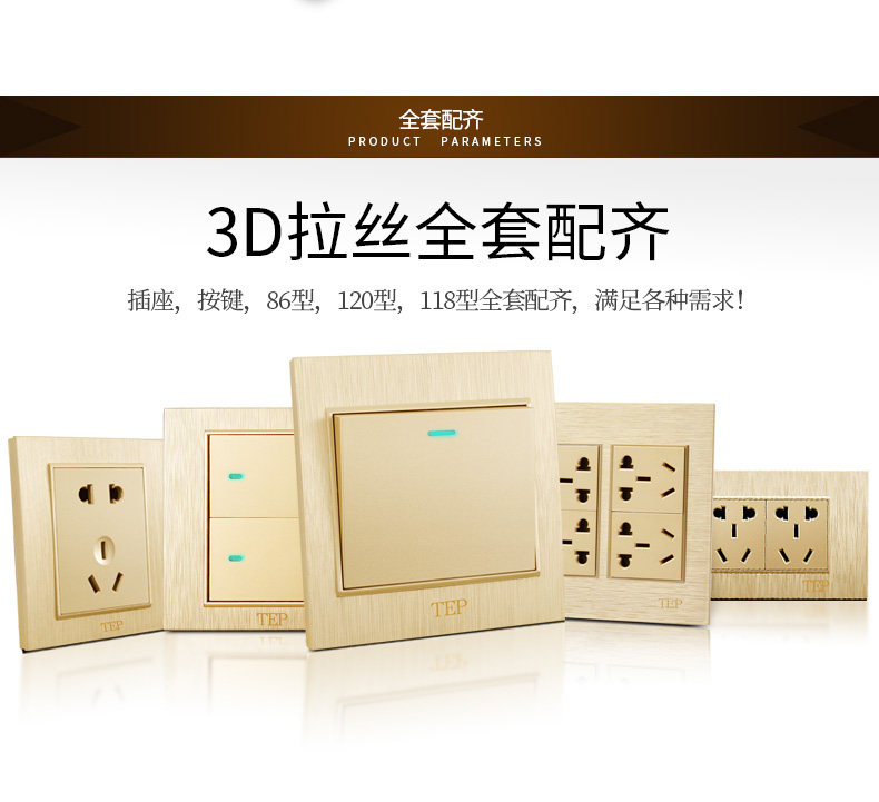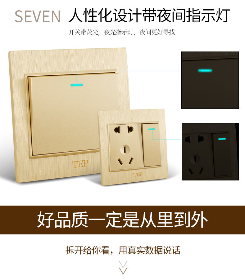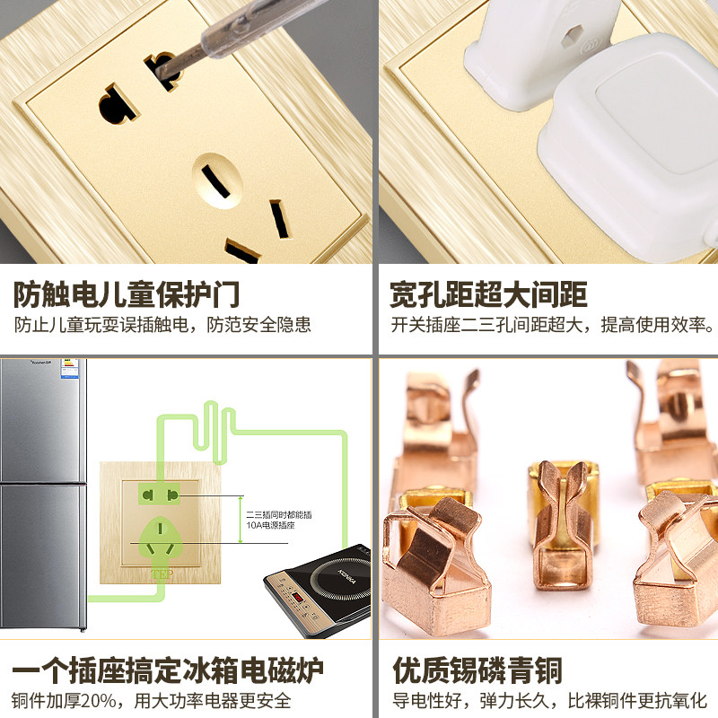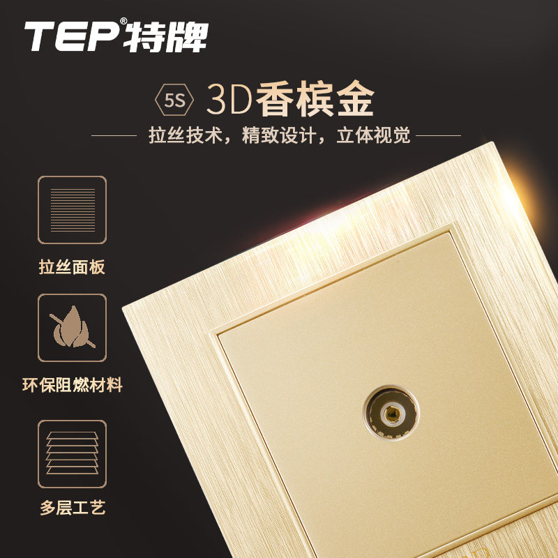 Международный электрический переключатель панель панели 86 Семейный шампанский темный кабельный телевизор телевизионный телевизор