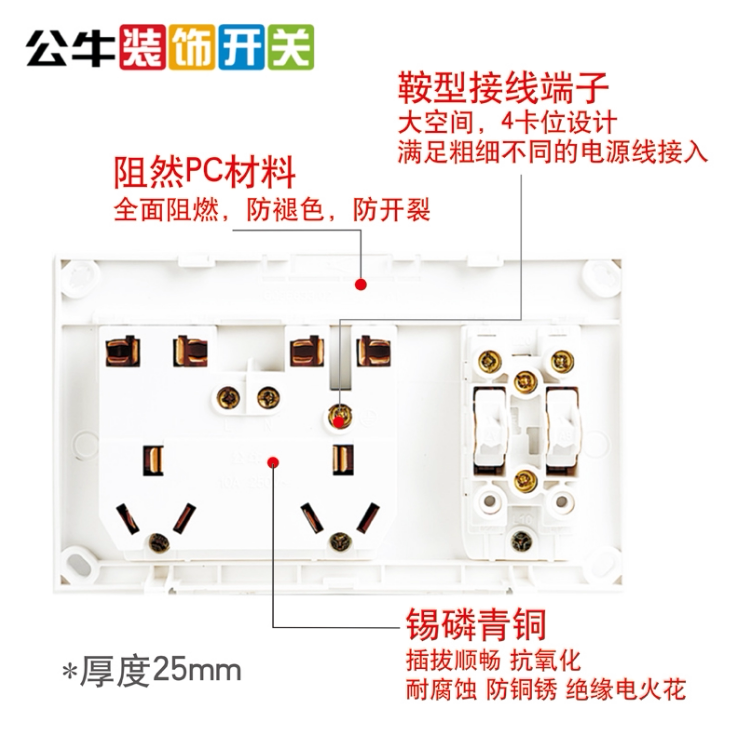 Розетка Буллсмо с переключателями с тонкими домами, двумя одноопенными переключателями с десятью -ямы