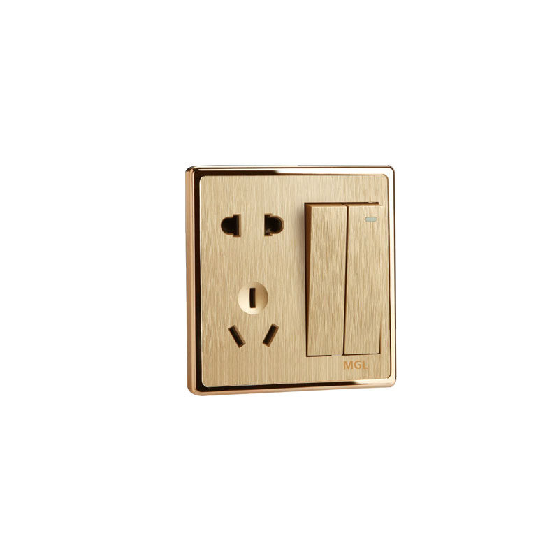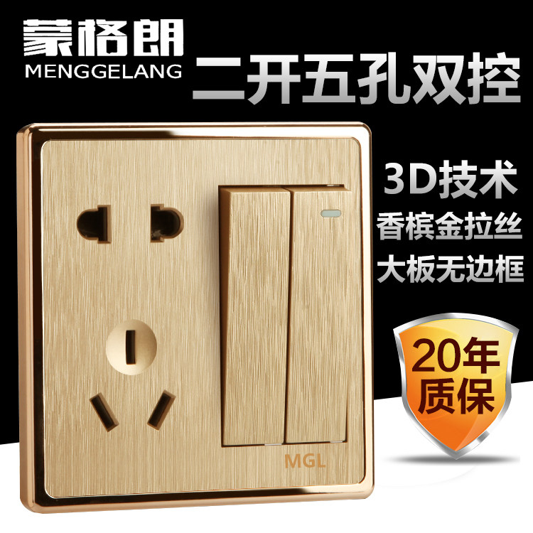 86 тип сокета с панелью разъема выключателя Два открытого пяти -отверстия двойного управления 2 Открыть 5 розетка на стену с шампанским золото