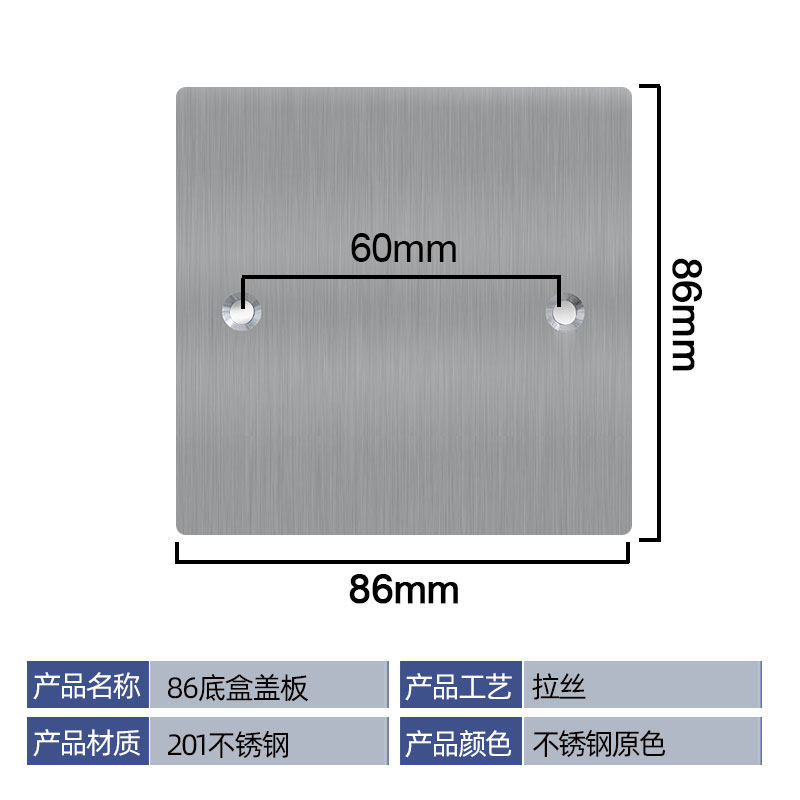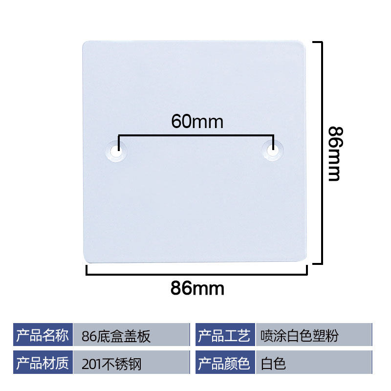86 Крышка из нержавеющей стали Ультратонкая белая пустая панель.