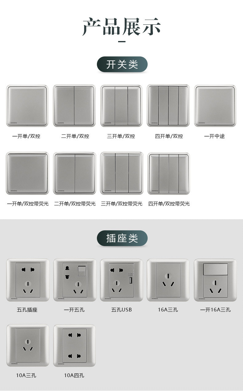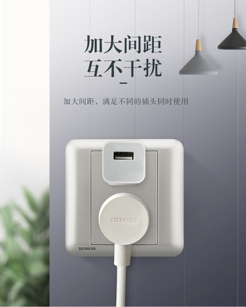 Розетка переключателя Siemens Haorui, селеновая глазурованная, серебристая, тип 86, бытовой источник питания, USB с пятью отверстиями, один открытый, со стеной для кондиционирования воздуха 16А