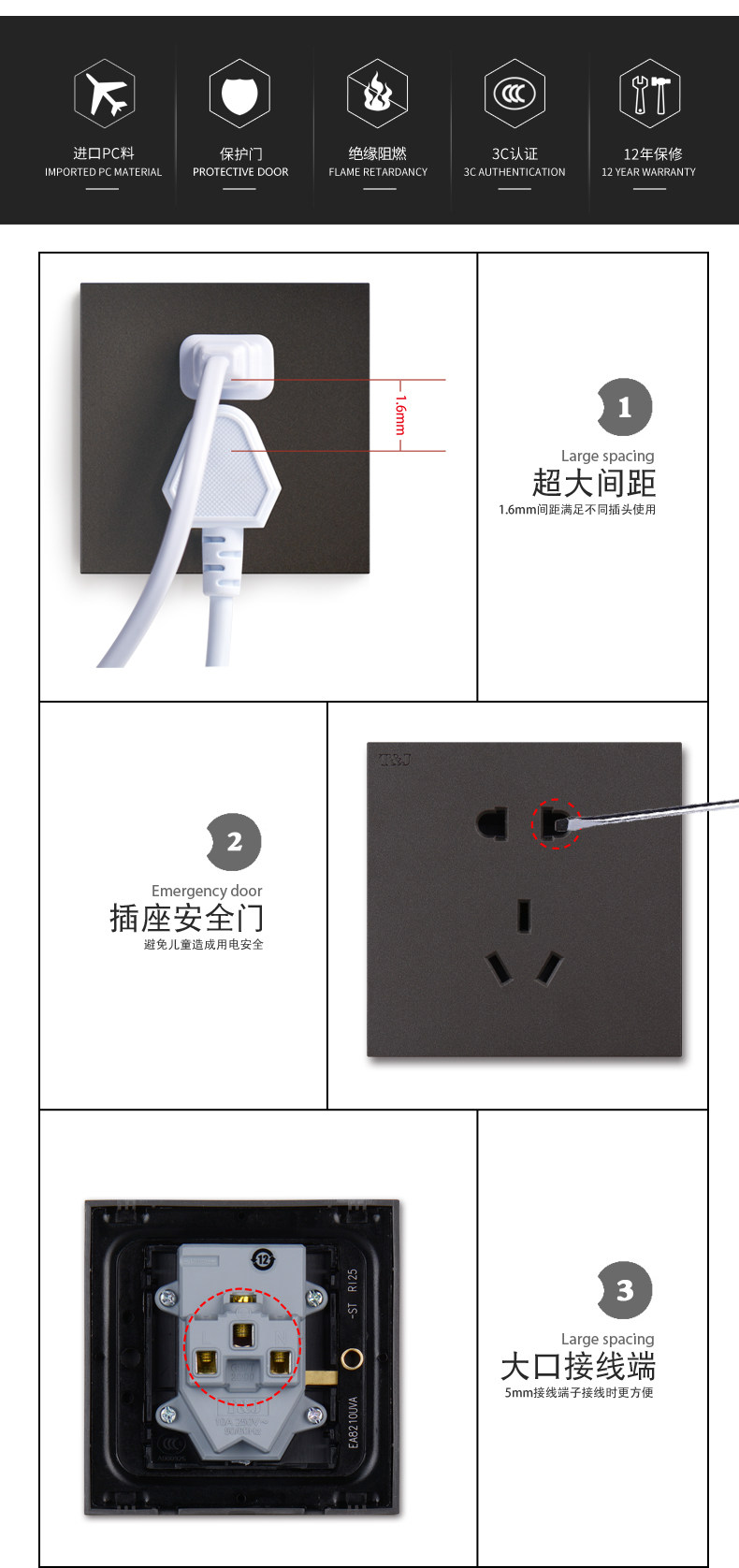 TJ Sky Skeed Speck Socket Fusion 10A5 HOLE TV 16A Панель кондиционера с переключением одной открытой большой платы Белый 86