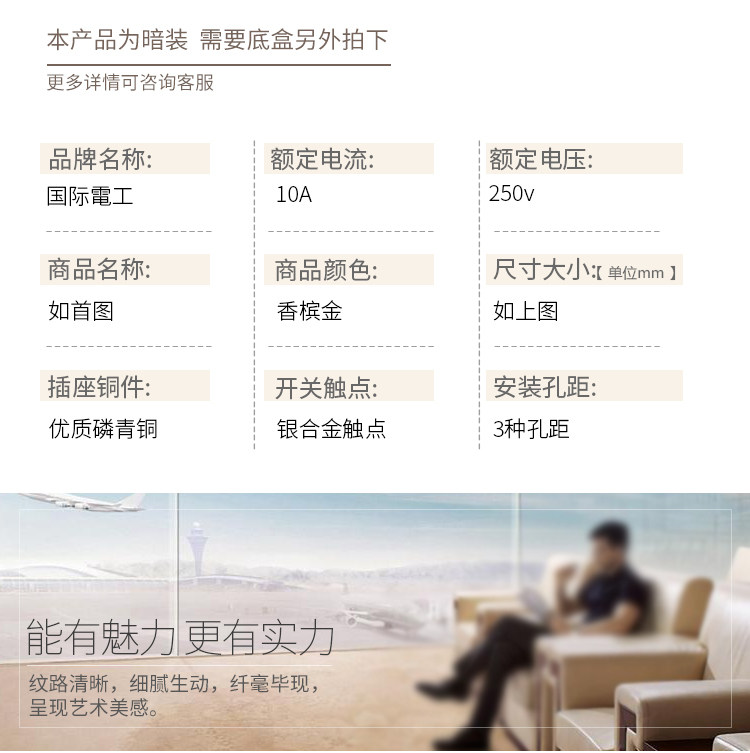 Международная доска для электричества шампанское Golden Rita Home 118 Switch Spocket Panel A Five -Hole 16a Conditioner Power