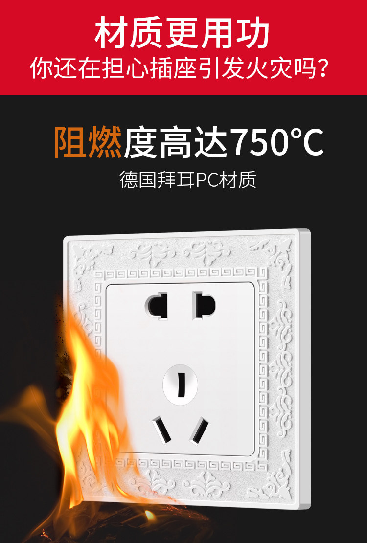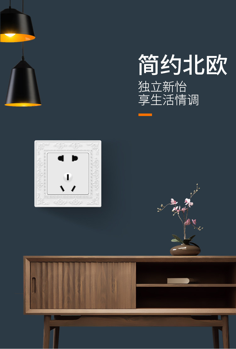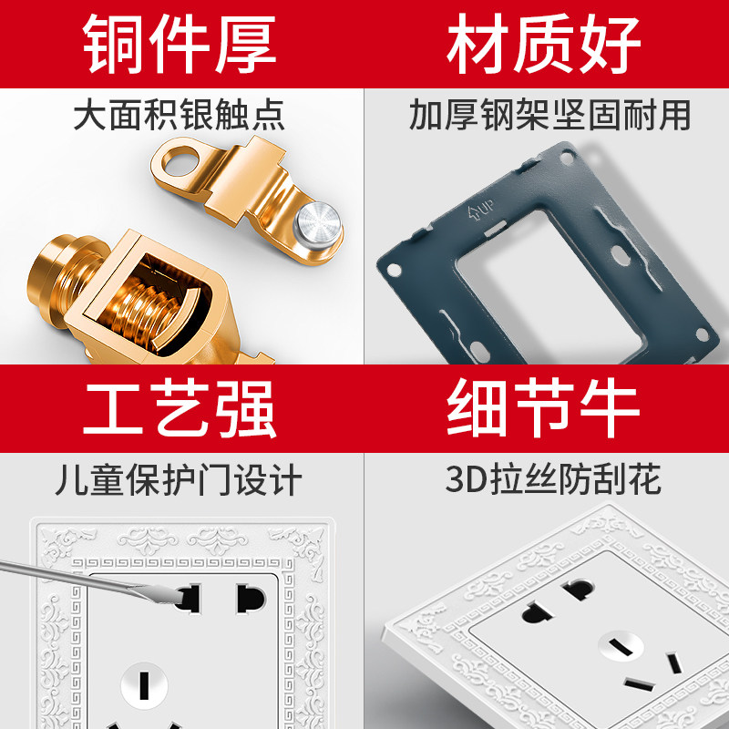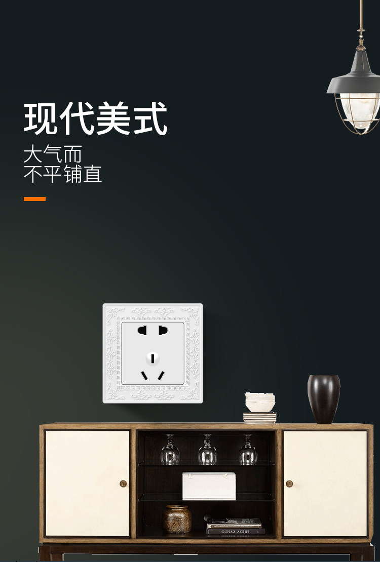 Международный электрический выключатель разъем 86 темного веса Home 5 пять -отверстие USB One One Open Dual -Control полосатая полиута -панель