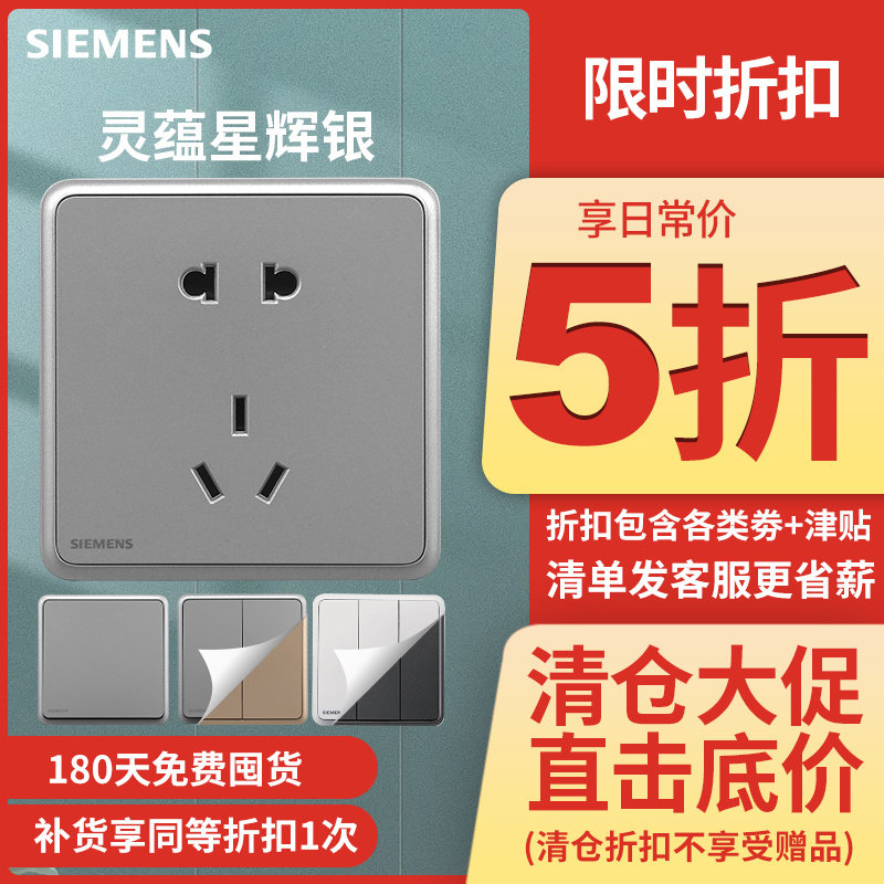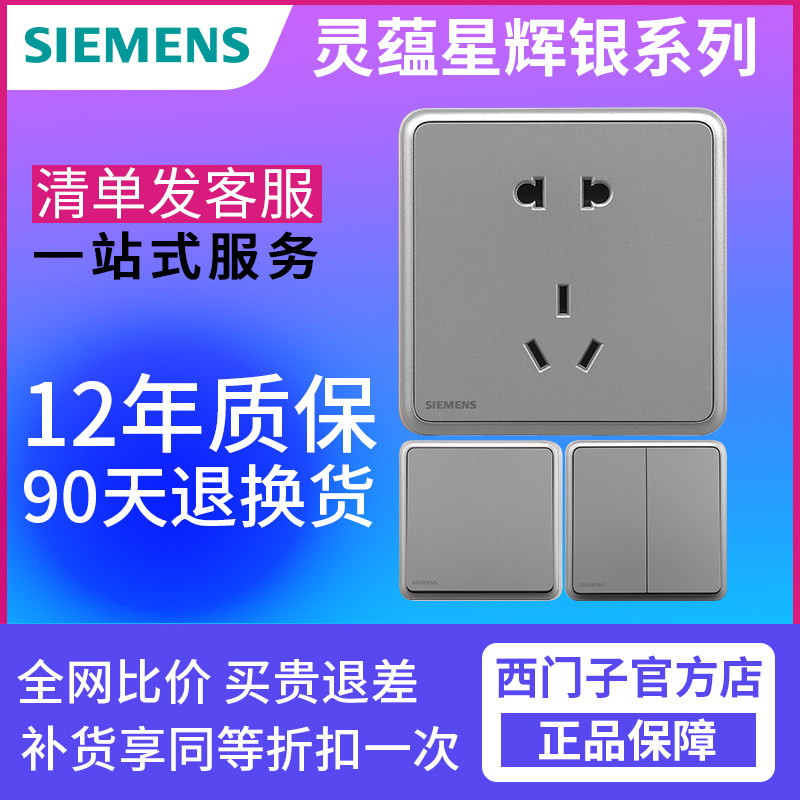 Siemens Switch Socket Lingxing Singhui Silver Grey Family 86 Пять -яма с выключателем с коммутатором USB панель