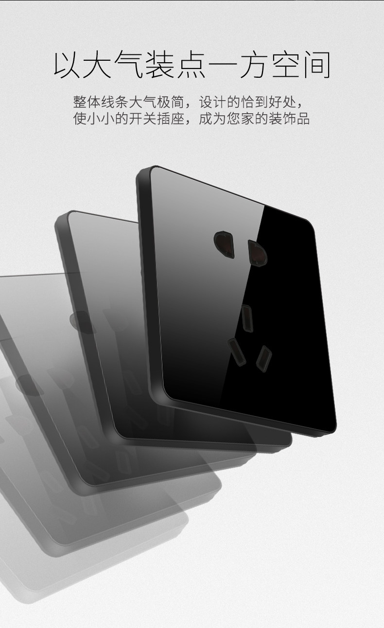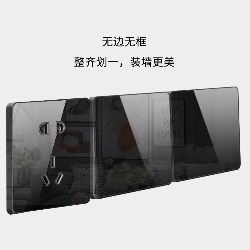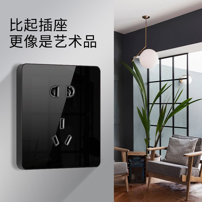 Нордическая минималистская стена -тип большая пластина пять -яма -выключатель панель 86 Black Switch питание однодневное дом с двойным управлением.