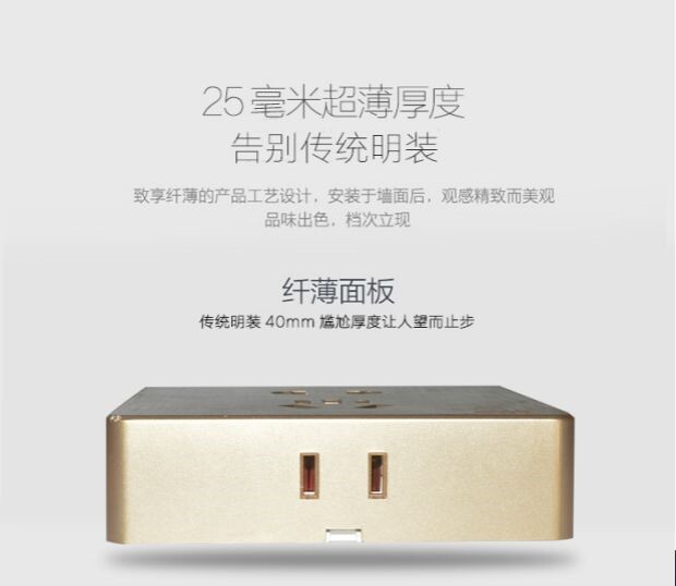 Розетка для открытого выключателя puxi, розетка с открытым проводом и пятью отверстиями с матовым золотом шампанского, ультратонкая вилка для открытой коробки длиной 2,5 см.