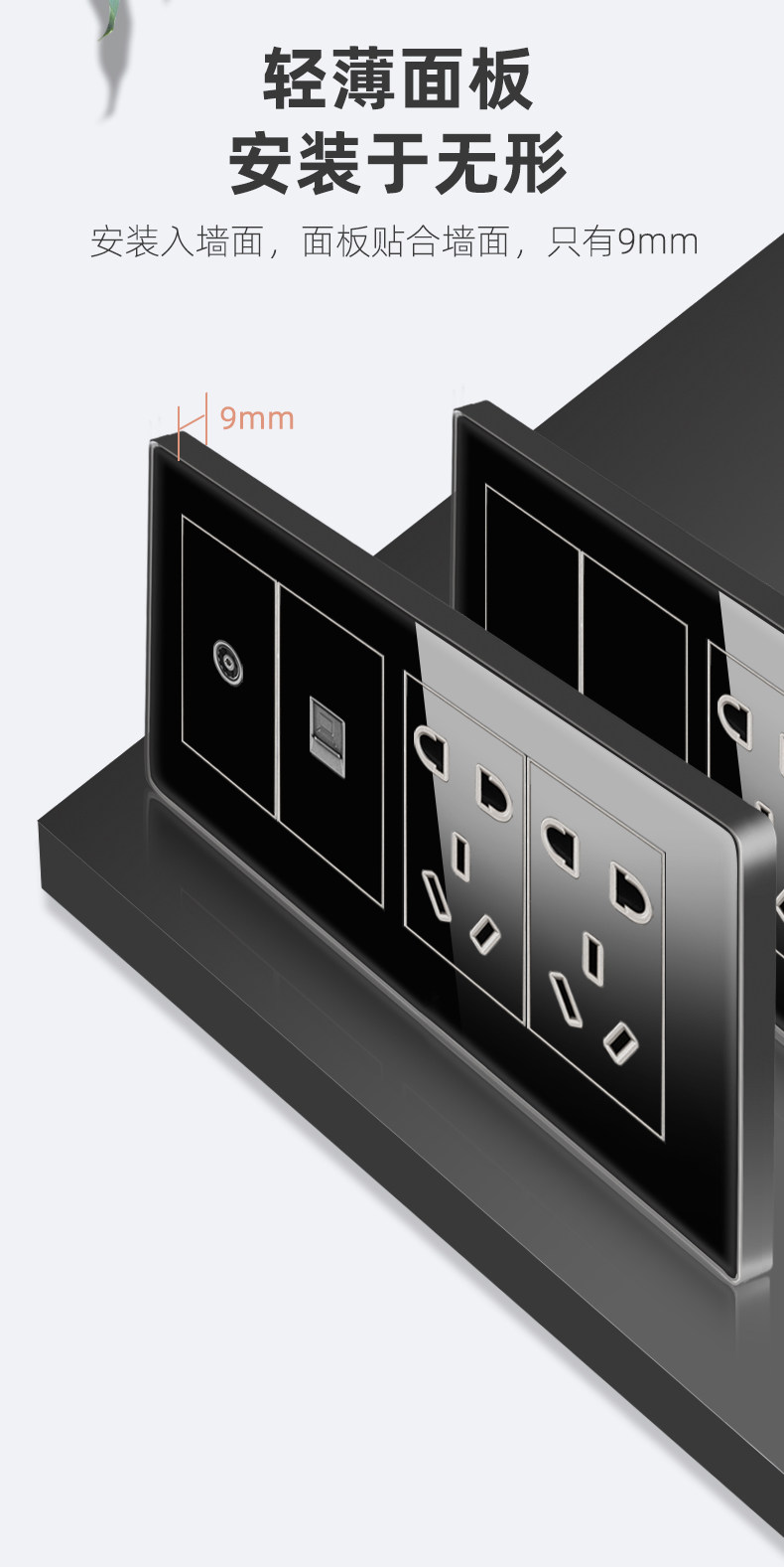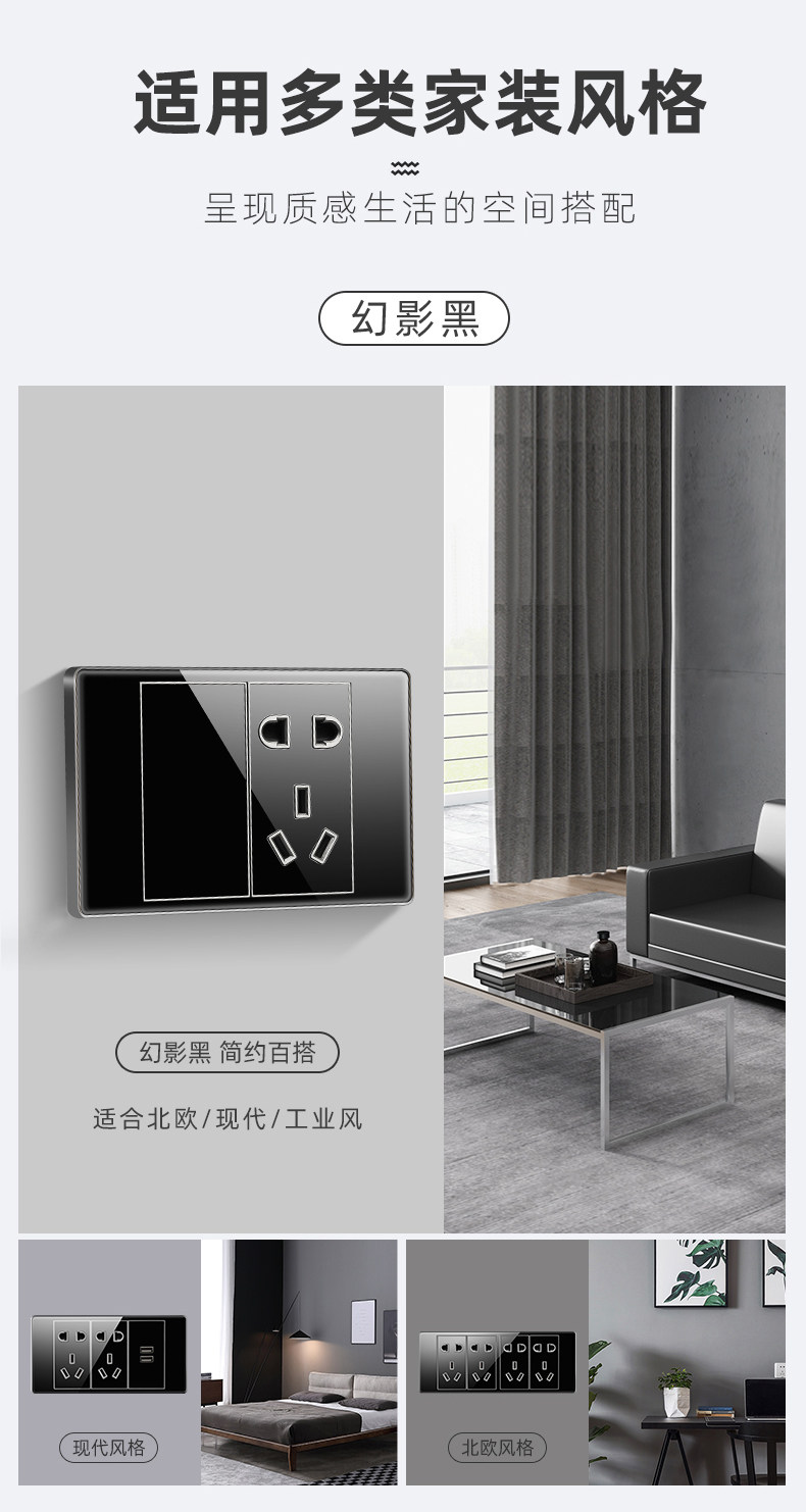 Черный переключатель, настенная световая панель, блок питания, скандинавский стиль, зеркальный эффект