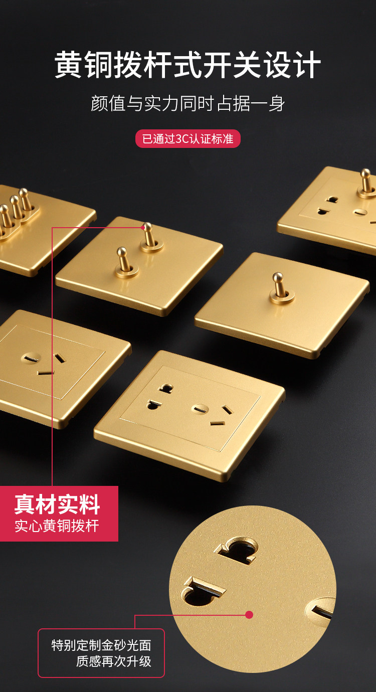 Переключатель Hamaton Switch панель ретро бронзовый рычаг один открывает пять -отверстие Nordic Hotel Champagne Gold Loft Industrial Style