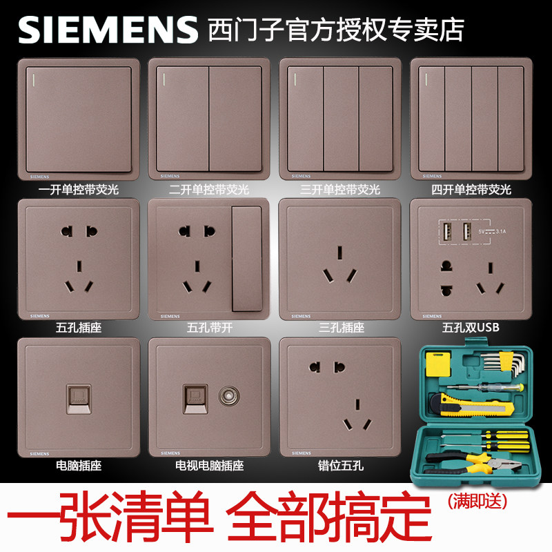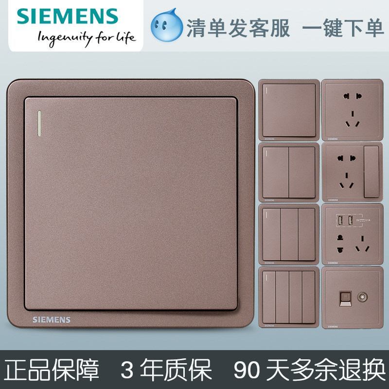 Siemens Switch Socket на панель Dianxi золотисто -коричневый черный дом, пять -отверстие с двойной -отверстие USB стена 86 тип