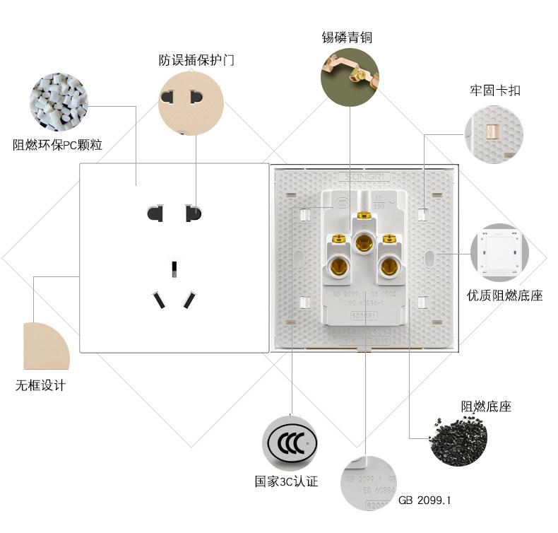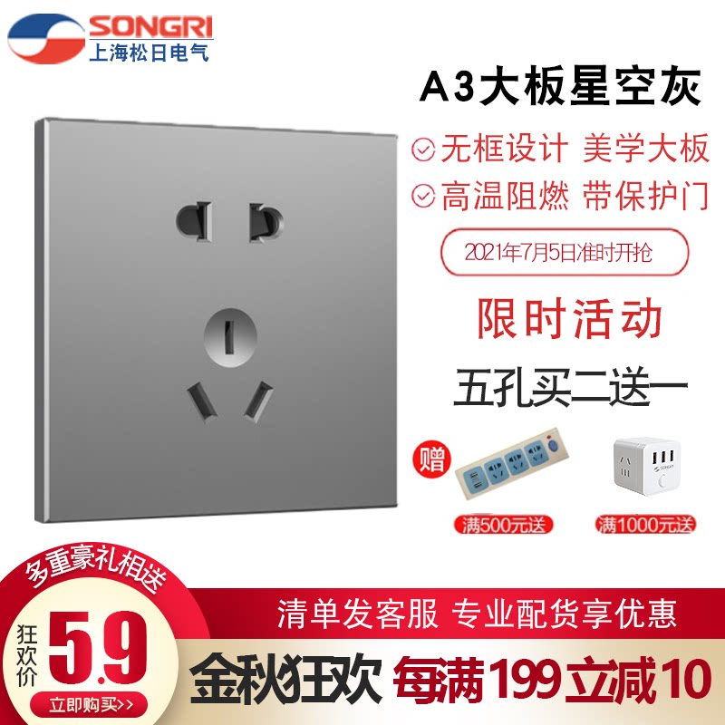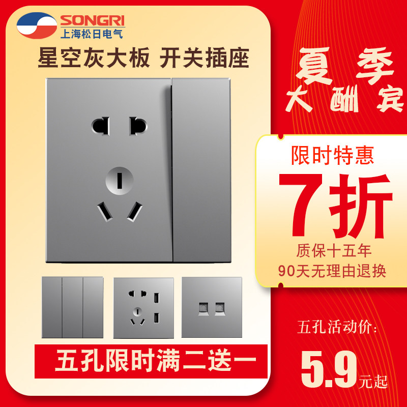 松日 Переключатель, кондиционер 16A, гнездо, пять -яма -гнездо 86 панель USB -переключателя Dark Porous A3 Grey